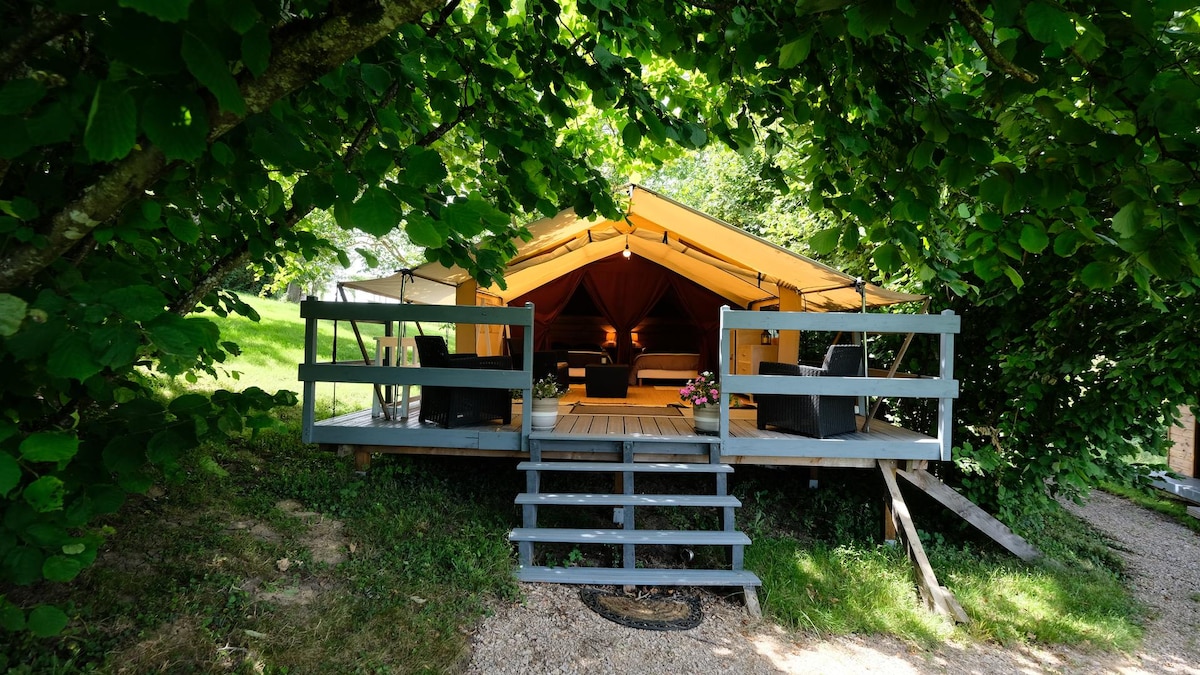 在宁静的大自然中心地带的露营地中的豪华露营帐篷