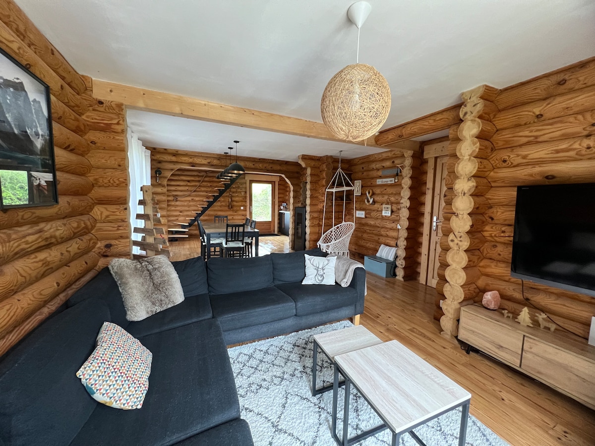 Small original house for single person or couple with 1 child. Ideal for nature lovers or in search of artistic creation. Possibility to sleep at 5 using the convertible (but it's tight). Private forest with walking path. A covered terrace and a terrace with barbecue, tables and 5 chairs. Car compulsory because the house is 3 km from the nearest village (5000 H)
