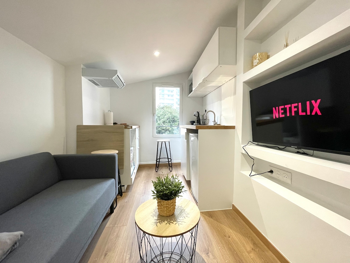 Appartement de standing de 55m² avec patio de 15m² dans une résidence rénovée et sécurisée au centre ville. Il est situé au rez-de-chaussée et entièrement de plain-pied. Toutes les pièces sont équipées d’une climatisation/chauffage et de volets roulants électriques. Ce logement spacieux bénéficie de calme tout en étant au plus proche des commodités du cœur de ville. Vos déplacements pourront aisément s’effectuer à pieds ou à vélos. Un local vélos est d’ailleurs disponible dans l’immeuble.