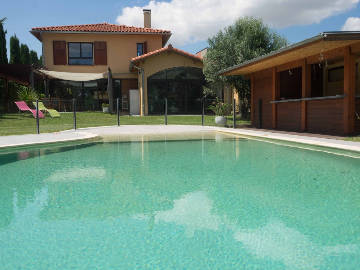 Beautiful house with pool & jacuzzi located north of Toulouse, with big deck made of exotic wood, dominating a private lake. The house is surrounded with wide wooded garden (2500m2) A secured parking lot (100m2) is accessible for the guest. The access is a private road, common with 3 other houses. It is very quiet with no direct view on Neighbors. Fabrice & Sophie will be happy to share with their little paradise. The Jacuzzi is optional please contact us.
