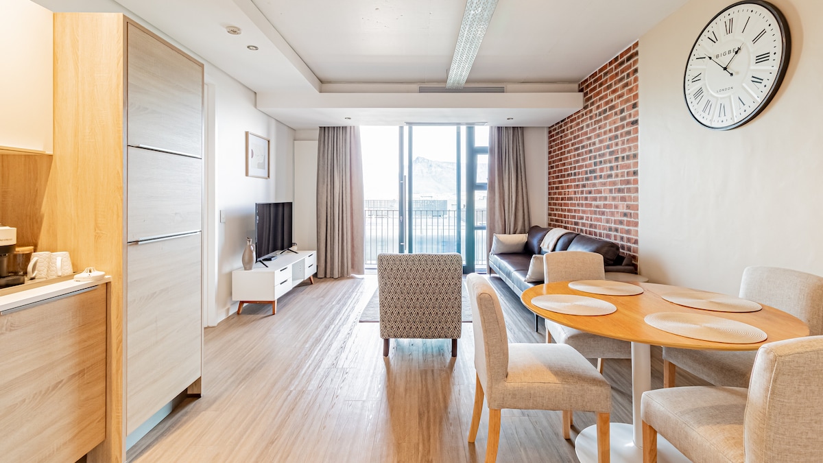 Welcome to our brand new designer home where where practical meets beauty and stylish taste is the order of the day. Throw your curtains open in the morning to enjoy the Table Mountain views from your ample balcony. The industrial feel and high ceilings give a gallery feel. If the moment grabs you head up to the roof top pool deck and entertainment area where you can enjoy crimson pink sunsets and 360 degree views of Cape Town including the Atlantic Ocean. *Zero power cuts in this building.
