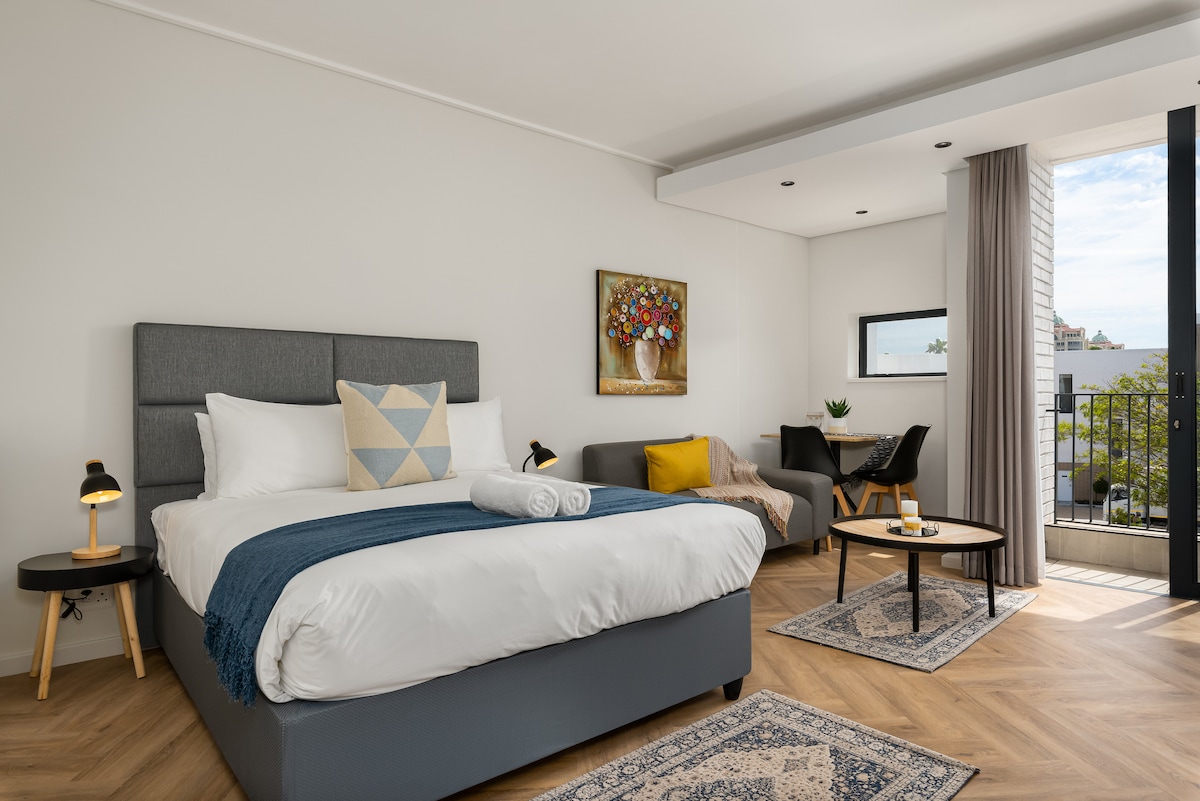 Welcome to the Urban Comfort Studio. Whether you’re here to discover the vibrant streets of Cape Town or simply unwind, this centrally located studio puts you steps away from the best shops, restaurants, and entertainment hotspots. Inside, you’ll find a thoughtfully designed space conducive for both work and relaxation. Enjoy a comfortable workspace, a fully equipped kitchen, and a lounge area to relax in. Cosy, secure, and beautifully furnished. This studio is ready to welcome you.