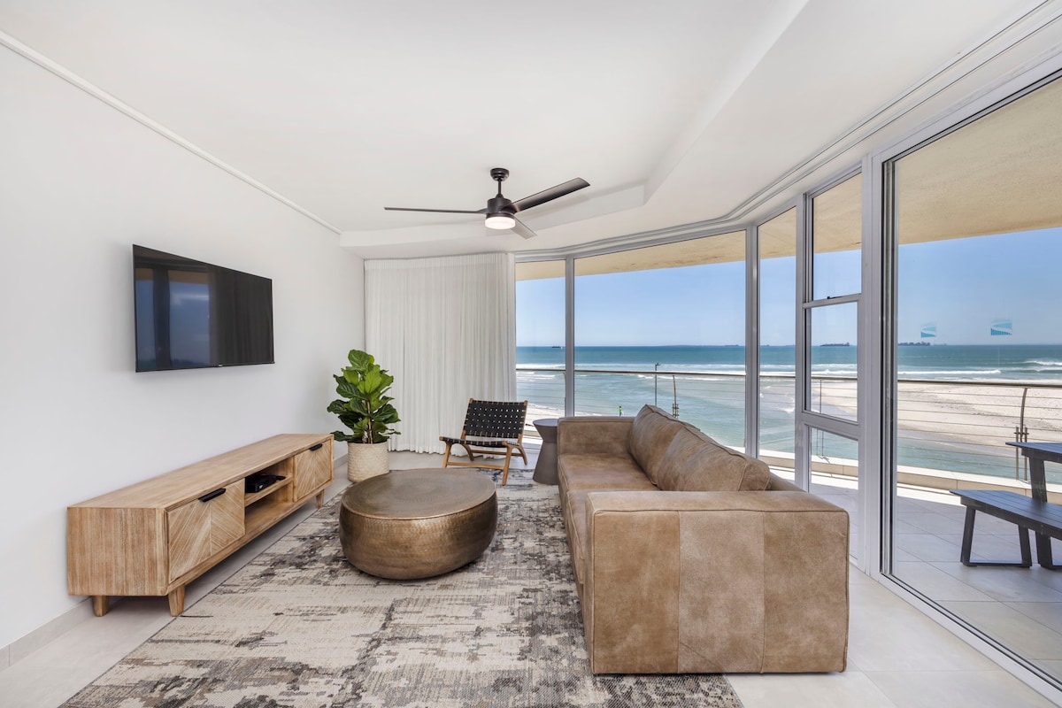 Welcome to this beachfront property. The light and open apartment is an easy 8km from Cape Town's city center. The spacious apartment has direct access to the beach as well as breathtaking table mountain and sea views. Fall asleep to the sound and smell of the ocean and wake up ready to enjoy the pool, Beach and Cape Town's many attractions. Has battery backup for WiFi and TV during load shedding. The following TV streaming services are included: AmazonPrime Video, Disney plus.