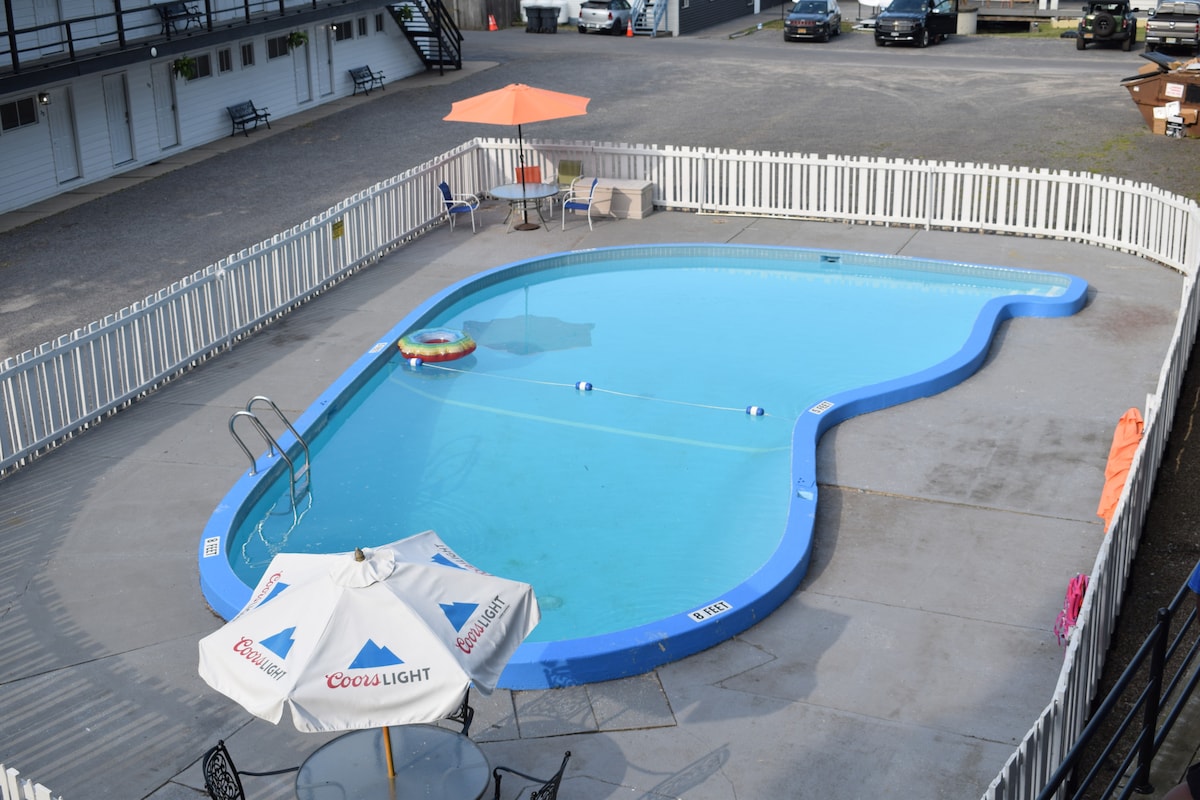 Make yourself at home in our queen and twin bed kitchenette, thoughtfully designed for extended stays and added convenience. This inviting space features a well equipped kitchenette complete with a microwave, mini-fridge, and coffee maker — perfect for preparing meals or snacks anytime. Stay cool with efficient air conditioning, stay connected with complimentary high-speed fiber internet, and unwind in a cozy setting right next to Keuka Lake!