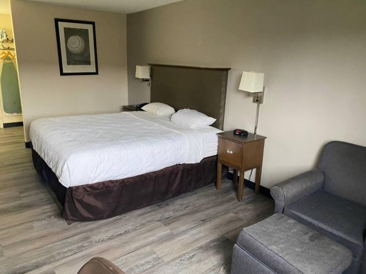 Make yourself at home in our Queen Room with Kitchenette, thoughtfully designed for extended stays and added convenience.This inviting space features a comfortable queen-sized bed and a well-equipped kitchenette complete with a microwave, mini-fridge, and coffee maker — perfect for preparing meals or snacks anytime. Stay cool with efficient air conditioning, stay connected with complimentary high-speed WiFi, and unwind in a cozy setting that captures the relaxed, lakeside vibe of Keuka Cove Inn.