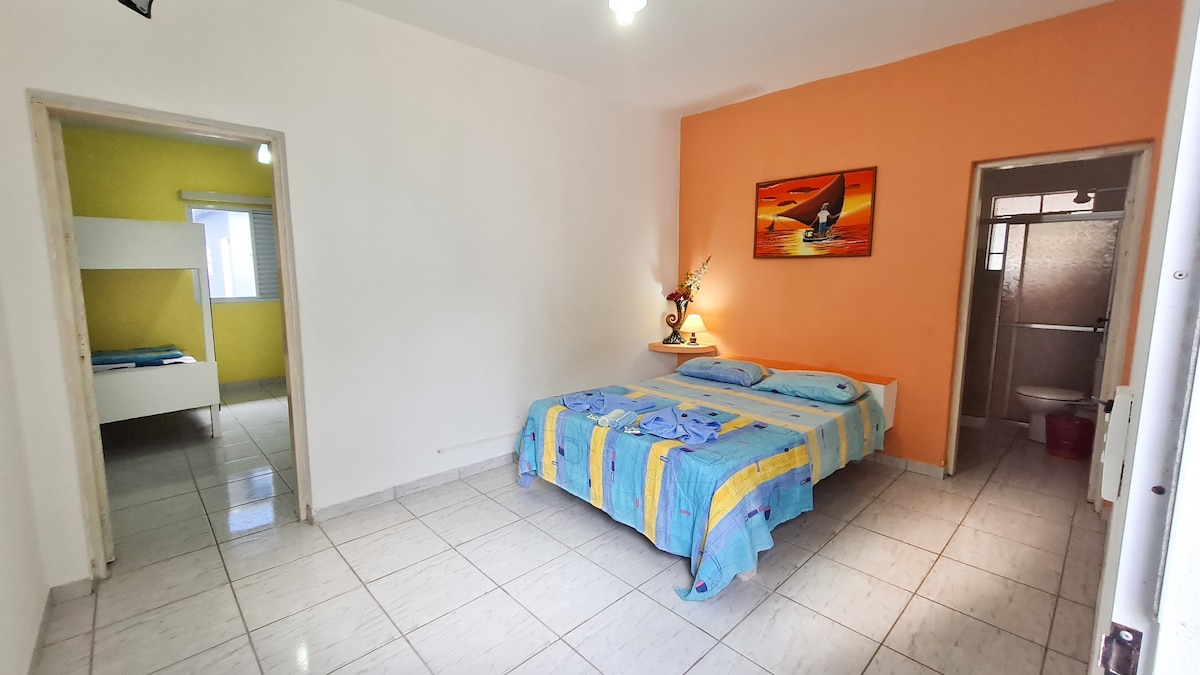 Esqueça de suas preocupações neste lugar espaçoso e tranquilo. A casa está localizada a menos de cem metros da praia, que é quase particular, bem tranquila. Do portão você pode ver o mar. O espaço é amplo e arejado, num terreno de 500m, com área externa gramada, e jardim bem arborizado.