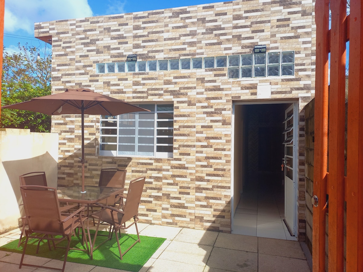 Relaxe neste espaço calmo e cheio de estilo para duas pessoas . O espaço conta com cama de casal, cozinha com utensílios, micro-ondas, liquidificador, cafeteira, grill, banheiro, além de uma área externa de jantar com churrasqueira perfeita para aproveitar a vista. A propriedade está a 150 metros da praia, em um bairro muito tranquilo e arborizado. Nosso Balneário é uma mistura de praia e campo, com o contato ideal para relaxar junto a natureza.🏖🌊🌴🍀🌻