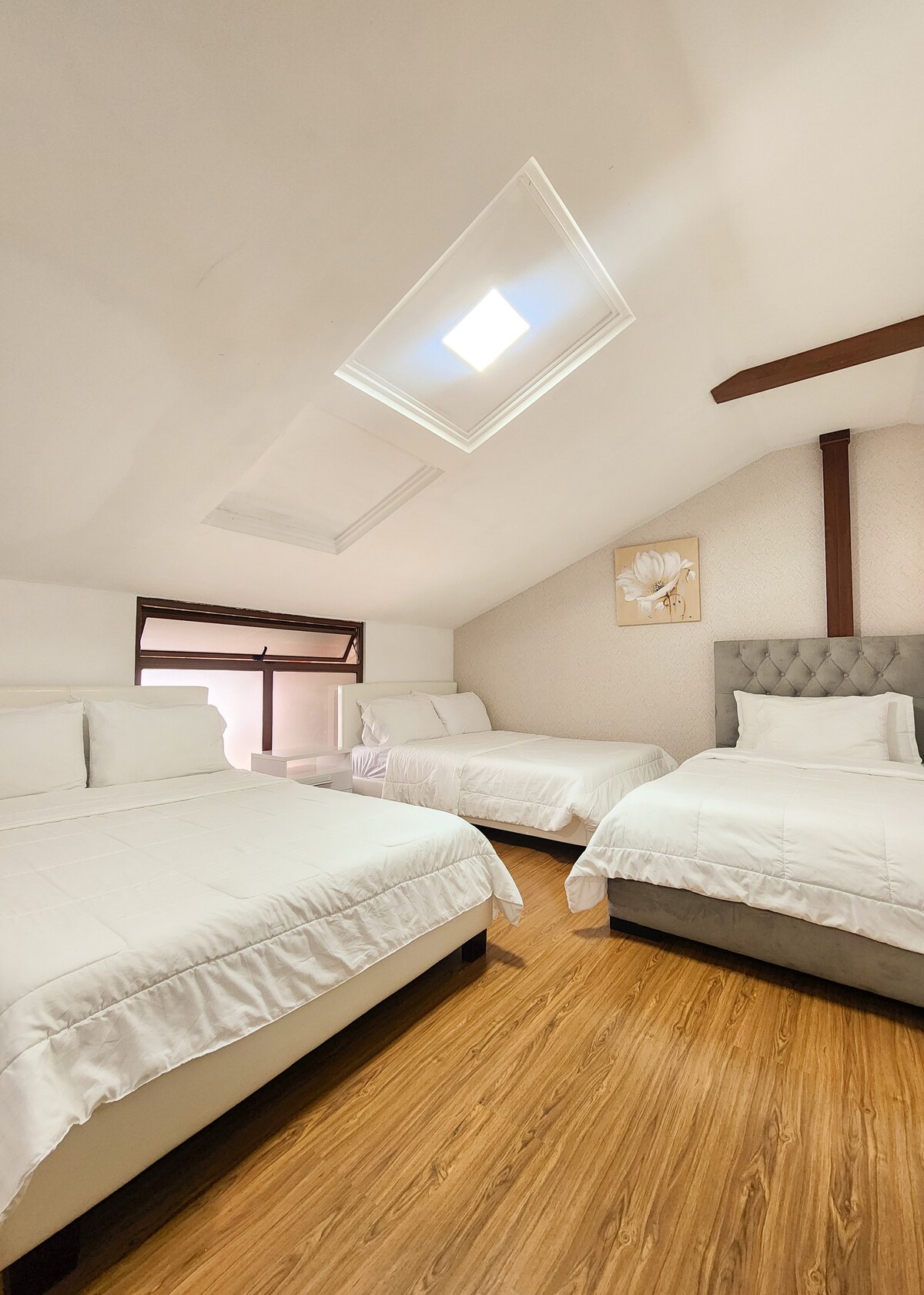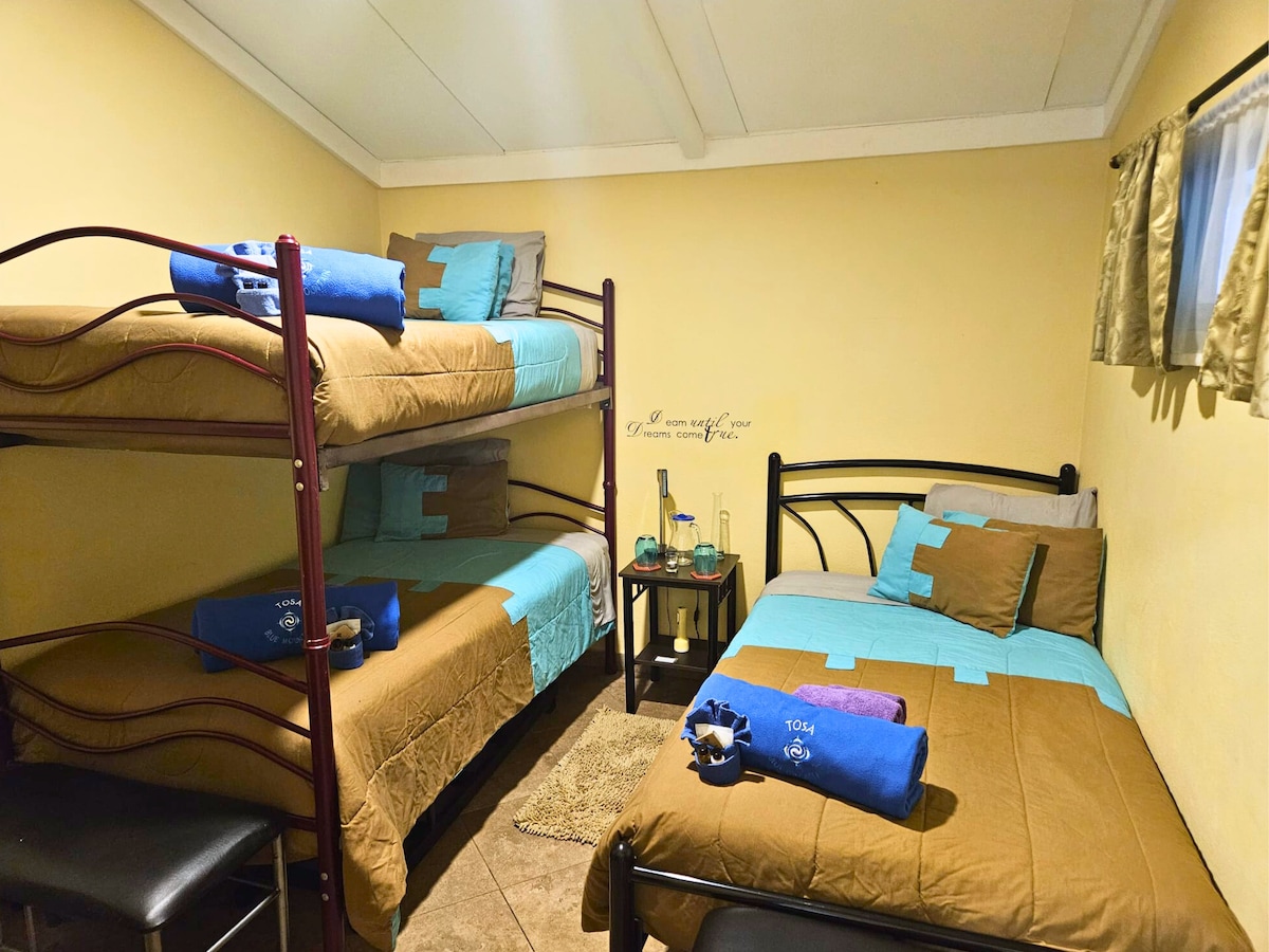 Our Triple Room is designed to provide comfort and relaxation for families or small groups. It features three beds and a private bathroom with hot water. Enjoy high-speed Wi-Fi and a cozy atmosphere that invites you to unwind after a day of activities. Its practical and comfortable design ensures a pleasant and hassle-free stay.