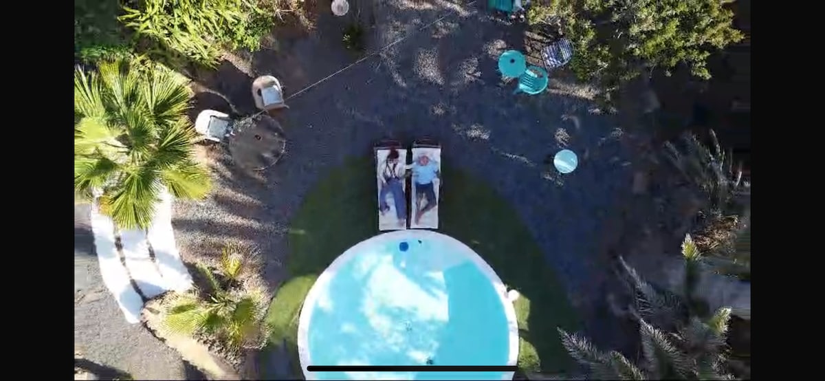 It is a house with pool and views of Las Palmas de Gran Canaria city. It is located in Arucas. It´s a quiet urbanization, without noise and close to all services (supermarkets, pharmacies, gas stations ...) It is an open floor fully equipped with: kitchen, bathroom, bedroom, dining room, laundry room and terrace with pool. The entire place provides wireless internet and a parking in front of the house on the road.