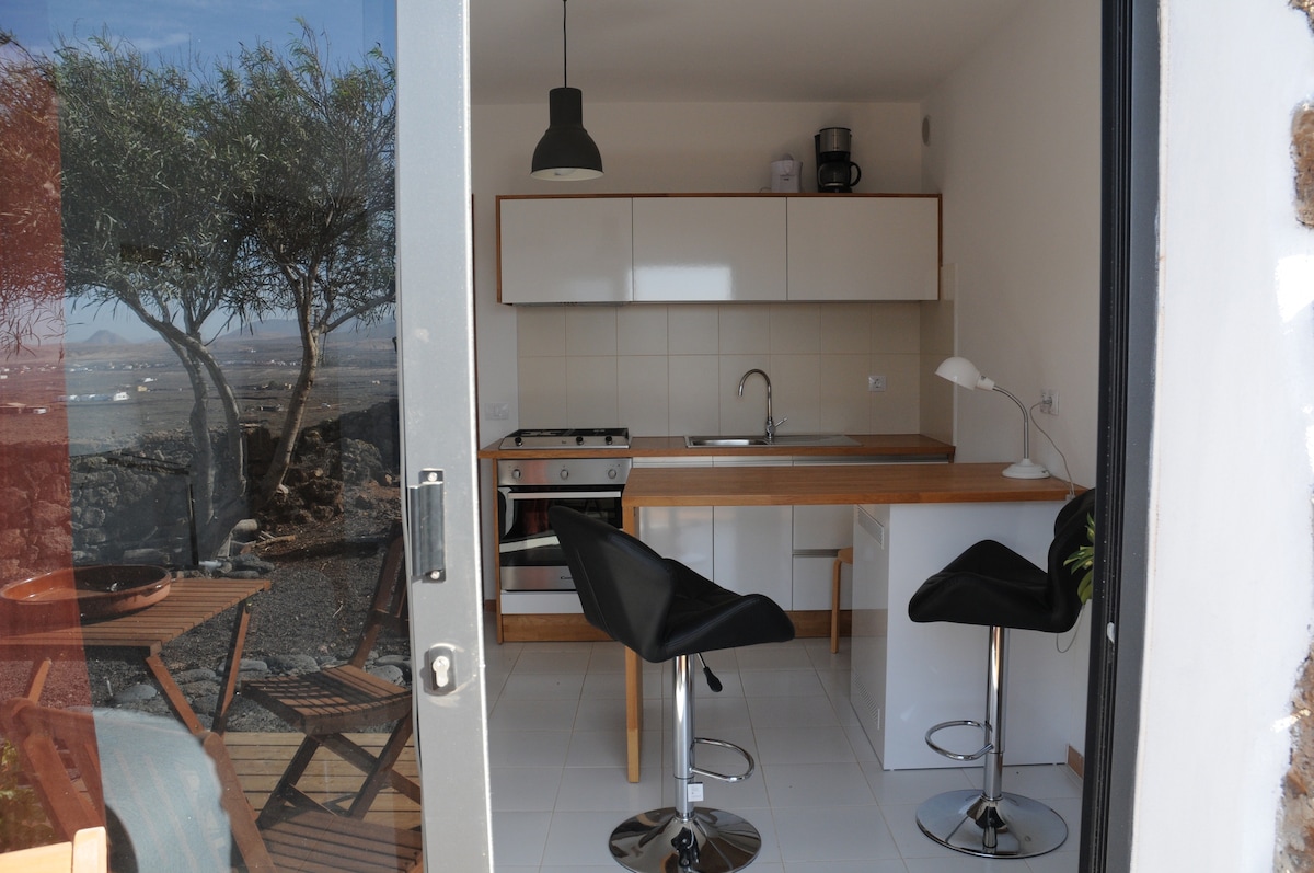 The poolside apartment is part of our Finca Tamaragua Guesthouse with private bathroom and kitchen. Located in El Islote a rural village. Central Location on the island and next to Lanzarote’s famous areas, the vineyards "la Geria" and the "Timanfaya" Nationalpark. There are beautiful hiking or cycling routes starting from the guesthouse. In 13min walking distance you reach our local restaurant “Teleclub”. Nearest supermarket is in Mozaga (5min drive).