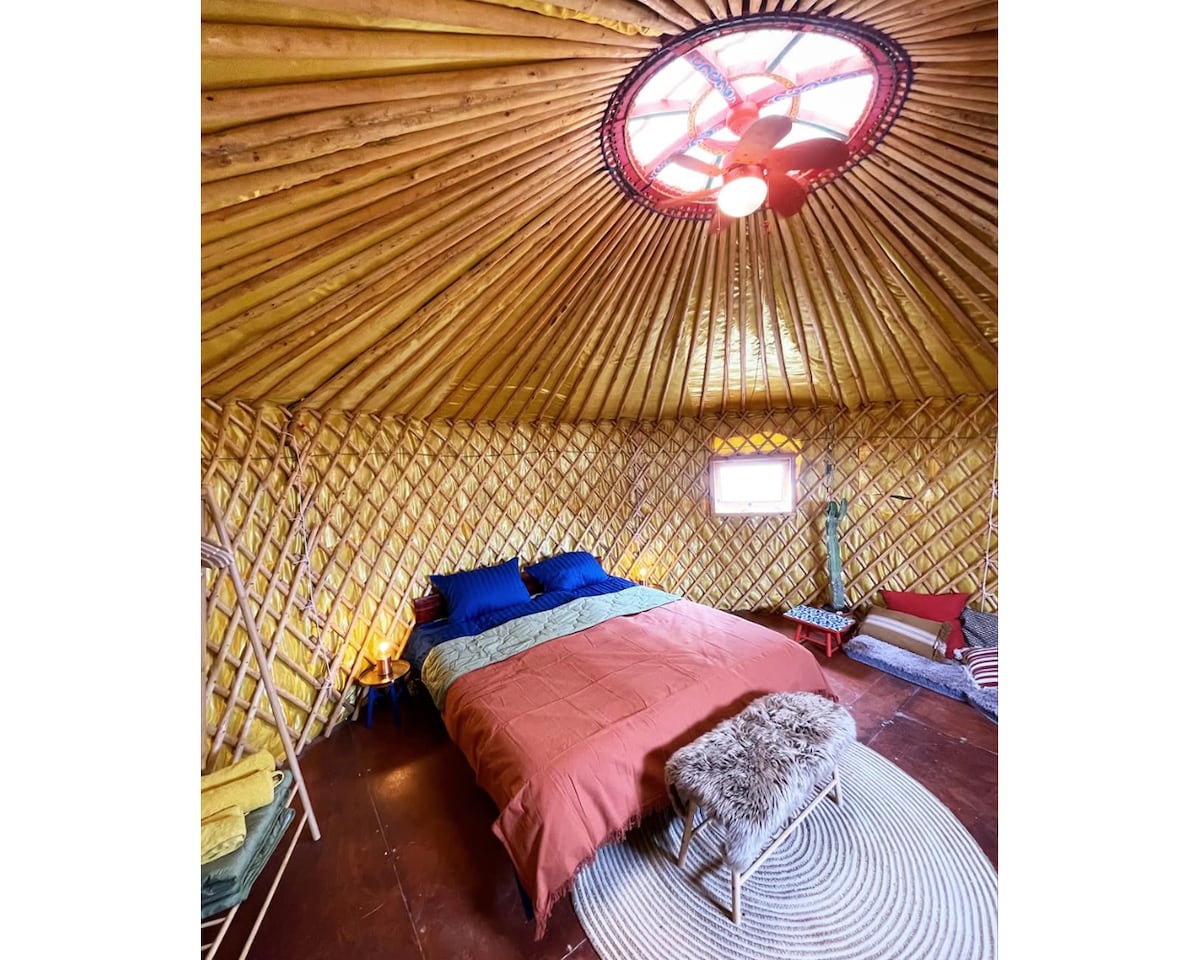 The Eco Twin Yurt at Finca de Arrieta village offers a truly bohemian ambience whilst being the perfect level of ‘stripped back’ for holiday goers that want to feel at one with nature, whilst having all the comforts necessary to make for a stress-free, relaxing stay. This luxury twin yurt consists of two adjacent authentic Mongolian yurts, a 6m and a 3m which makes it a great choice for 2 adults and 4 children or infants who are looking for a sustainable sunshine holiday.