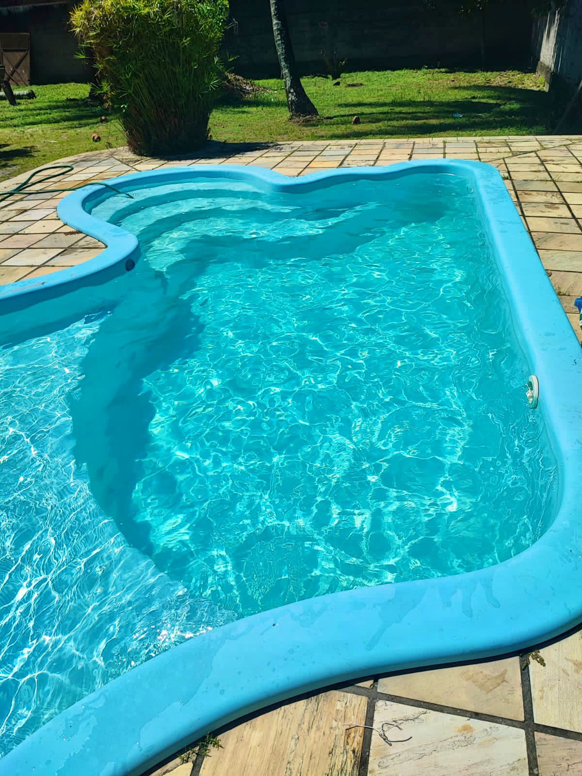 Casa completa aconchegante possui 3 quartos com ar-condicionado sendo 2 suítes,possui 4 camas de casal e 2 de solteiro,1 banheiro social, sala com sofa, tv ventilador, área no fundo com pia ,tanquinho de lavar roupas, cozinha com liquidificador, sanduícheira,copos, vasilhas pratos ,talheres,fogão, geladeira sala com uma mesa de 3 metros,cinuca,2 redes,garagem para 4 carros,piscina área coberta com churrasqueira, banheiro, mesas, cadeiras,freezer,balanço para criança.