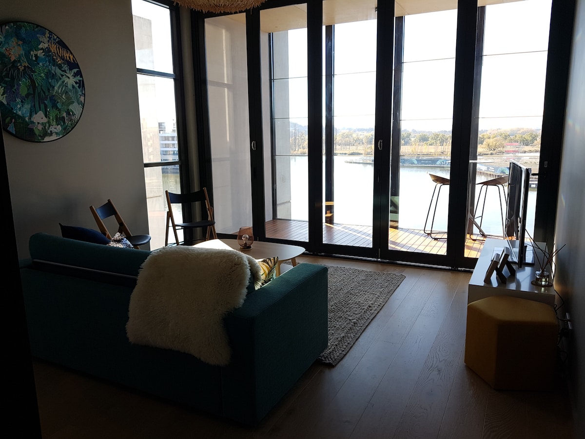Forget your worries in this spacious and serene space. - @ Sentinel apartment - All windows facing North with Lake view ! - Large living area for a 1-bed - Basement secured parking with easy access Top amenities: - Samsung 75' Smart TV - Nespresso machine with free pods - Kettle and Toaster - Queen size bed The area: - 1 min walk to Westfield, just accross the road - 2 min walk to Lake Ginninderra - Cafe and Phohub Downstairs - Central bus station Downstairs Professional host 24/7 available