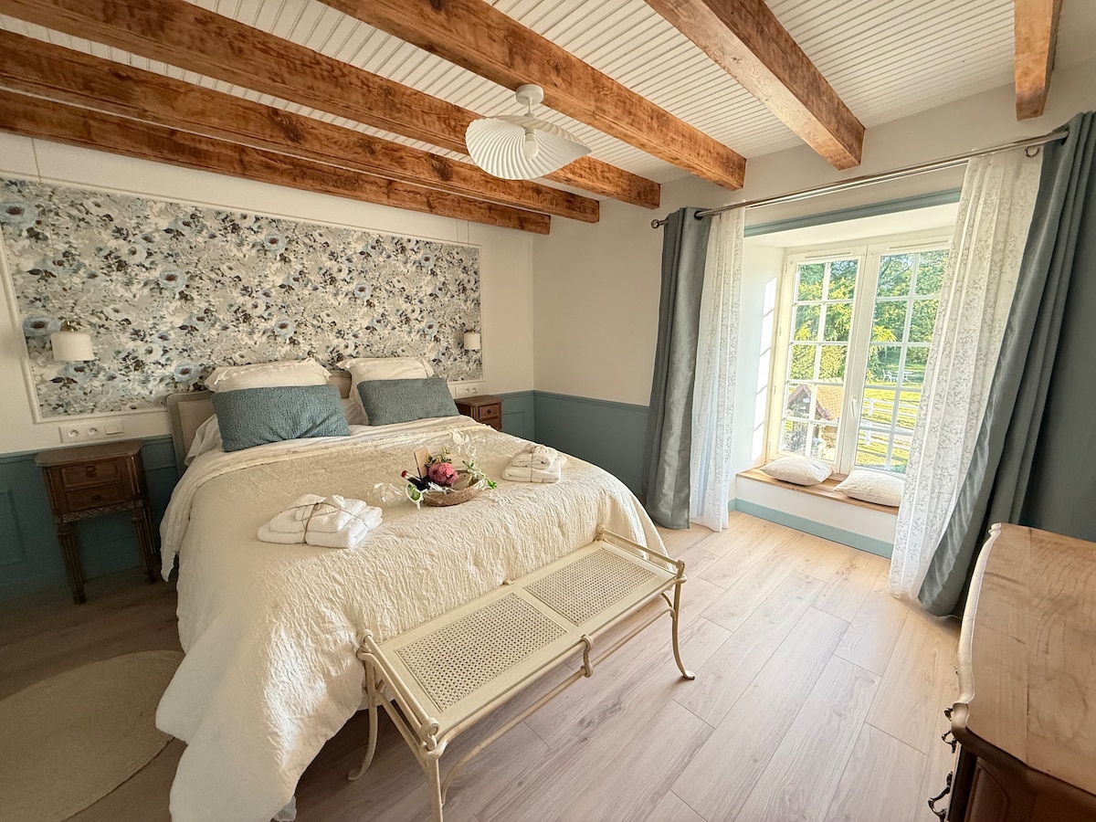 Dans le bourg de Saint-Georges-de-Gréhaigne, charmante longère rénovée en 2024, 90 m² pour 6 voyageurs. Grande pièce à vivre de 45 m², cuisine équipée, deux chambres, salle de bain, WC séparés et extérieur d’environ 100 m². À seulement 10 min du Mont-Saint-Michel, idéal pour découvrir la baie. Wifi, draps et serviettes fournis : posez vos valises ! Pour toute réservation en 2026, voir l’annonce « La Maison de Léon - Proche du Mont Saint Michel -