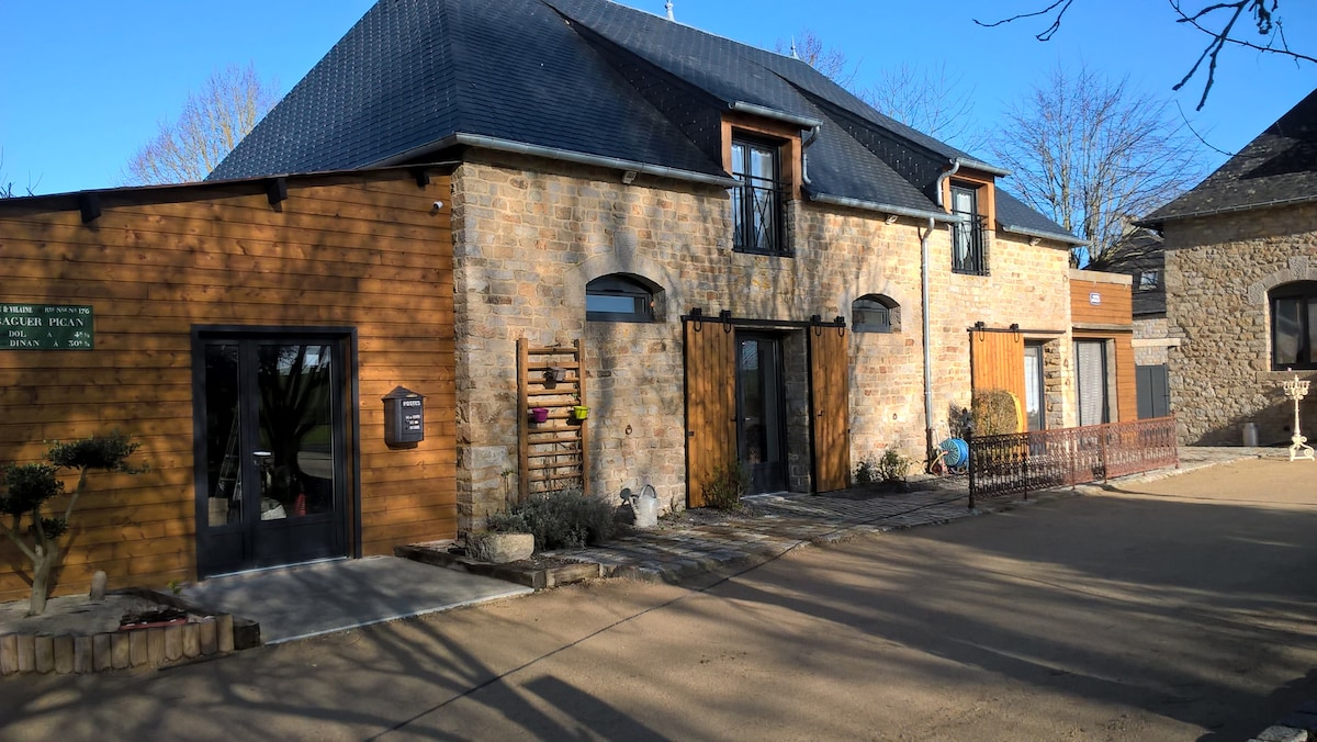 On wooded property with private parking, small lake. Located 2km from the Mont St michel parking lots and 500m from the voie verte. Close to Cancale, St Malo, Dinard, Granville ... Gîte for 2 to 8 people including: 2 bedrooms with 160cm beds and a sofa-bed in each room. Bathroom with shower. Separate WC. Fully equipped kitchen. Terrace, barbecue, free bikes and wifi.