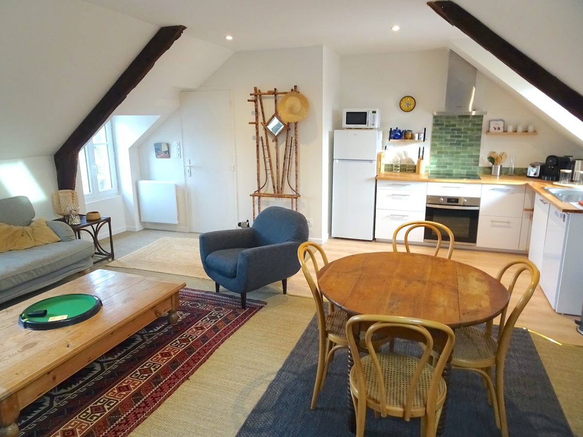 La Canc' à l’aise est un lieu unique situé sous les toits en plein centre de Cancale où tout peut se faire à pieds, à 2 pas du port et de toutes commodités (restaurants, boulangerie, supérette,…). L’appartement est équipé d'une chambre avec un lit queen size, une cuisine avec lave-vaisselle, un salon avec canapé convertible, une salle d’eau et wc séparés. Une mezzanine avec un lit deux places est également disponible (mode cabane). Place de parking privée disponible h24 & cave pour vos vélos.
