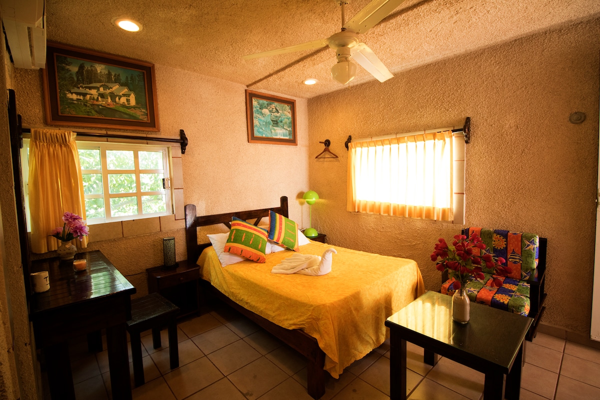 Estamos ubicados en una de las zonas mas tranquilas de la zona hotelera, la habitación incluye internet, baño privado, amenidades, acceso a la alberca. La habitación esta en un segundo piso y tiene un balcón en donde pueden fumar ya que esta prohibido fumar dentro de la habitación. Tendría servicio de recepción las 24 hrs. por lo que cualquier duda les podemos ayudar, contamos con servicio de guarda equipaje.