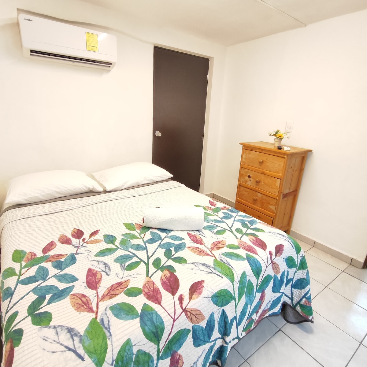 Disfruta de la sencillez que te brinda este alojamiento Ideal para 1 o 2 personas, tranquilo, cómodo y en una zona privilegiada de la ciudad. Este es un espacio privado que se encuentra en tercer nivel del edificio, por lo que es necesario subir escaleras. En la entrada principal hay dos escalones a subir.