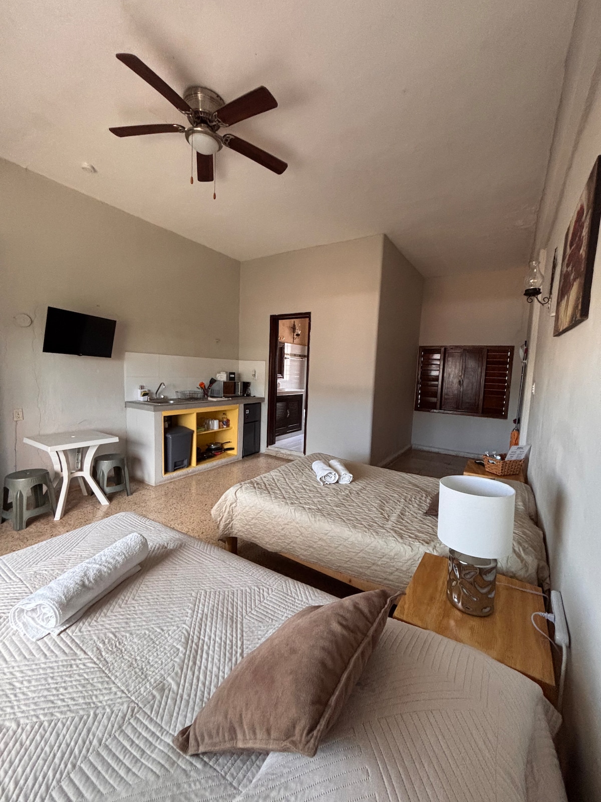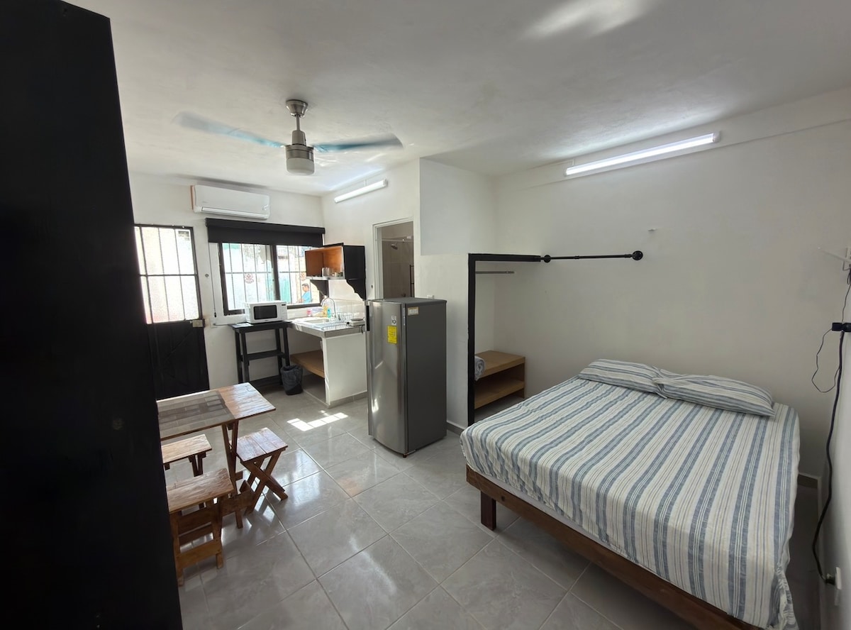 Just a 2.2. Km walk from the Puerto Juárez beach is this private studio located, ideal for getting to know the downtown area of Cancun and the quietest beaches in the area. You'll find just a steps away a local market, restaurants, coffee shops and the bus stop that will take you everywhere. - A solo 10 minutos caminando de la playa Puerto Juárez se encuentra este estudio privado, ideal para conocer la zona centro de Cancún y las playas más tranquilas de la zona.
