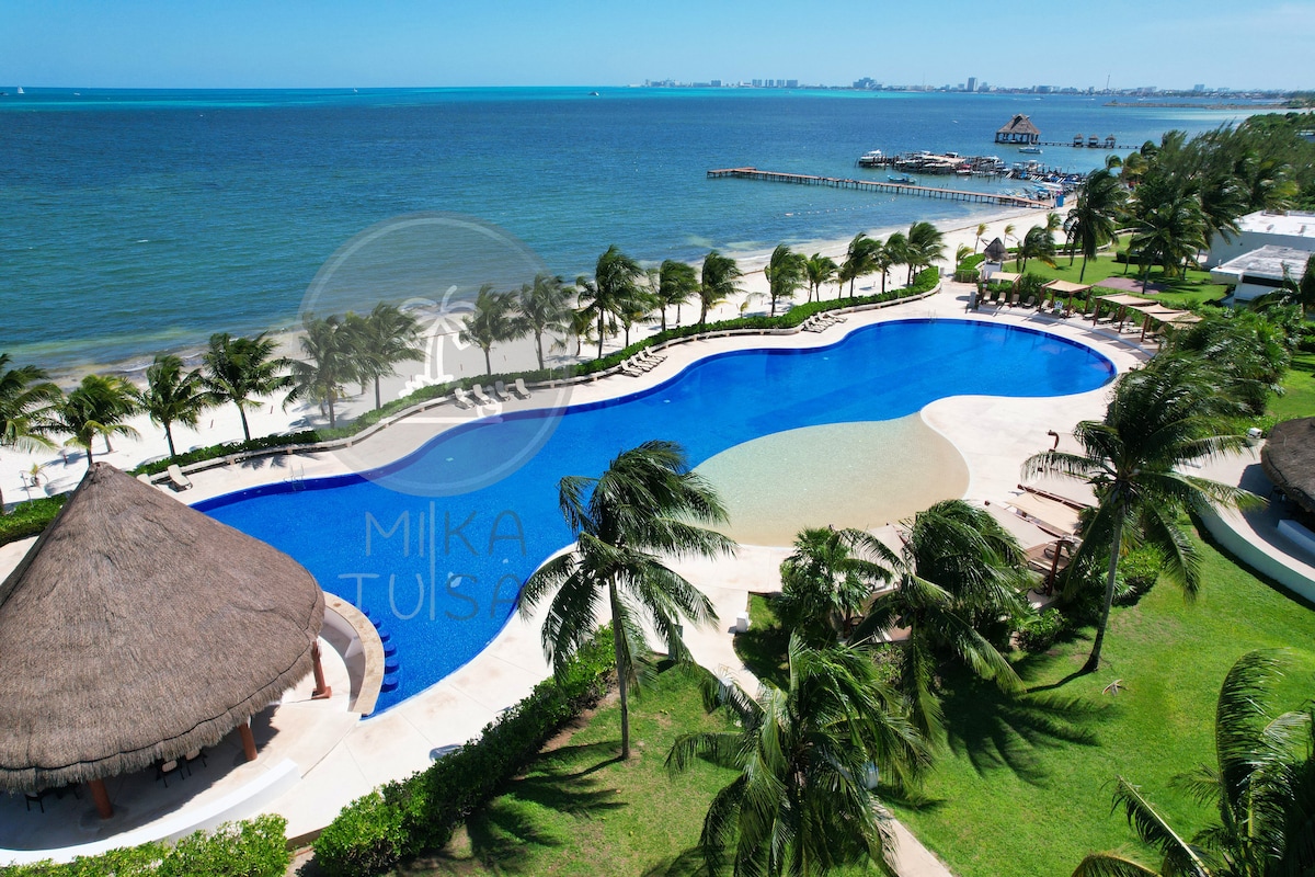 Stylish studio with amazing views, located in a 3 tower condo-hotel, pristine private beach, turquoise water, white sands. Huge wrap around balcony ocean and lagoon view. High speed Wifi, A/c, Smart Tv , safe. Lounge chairs and tents for free at pool and beach. Gym, tennis court, Coffee shop at lobby. Spa (with extra fee) Flexible All Inclusive Option for food and drinks -Pay only for the day(s) you want it-. Decide as your vacation unfolds.(today $95 usd p/p per day) ideal for couples