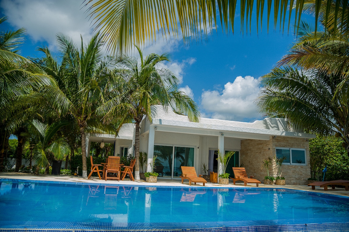 ❤️El Cielo❤️ is a Private Villa in Cancun with over 70 meters of Beach Front overlooking Isla Mujeres • Infinity Pool • Lavish Garden • Spacious Patio • 2 Beautiful Bedrooms with 2 Full Bathrooms • Living room • Fully Equipped + Stocked Kitchen • Palapa • Hammocks • BBQ Grill • WIFI • Short drive to Restaurants! •Totally private for couples that want to escape & enjoy the view & have a romantic getaway! •Across the street are archeological Mayan Ruins!