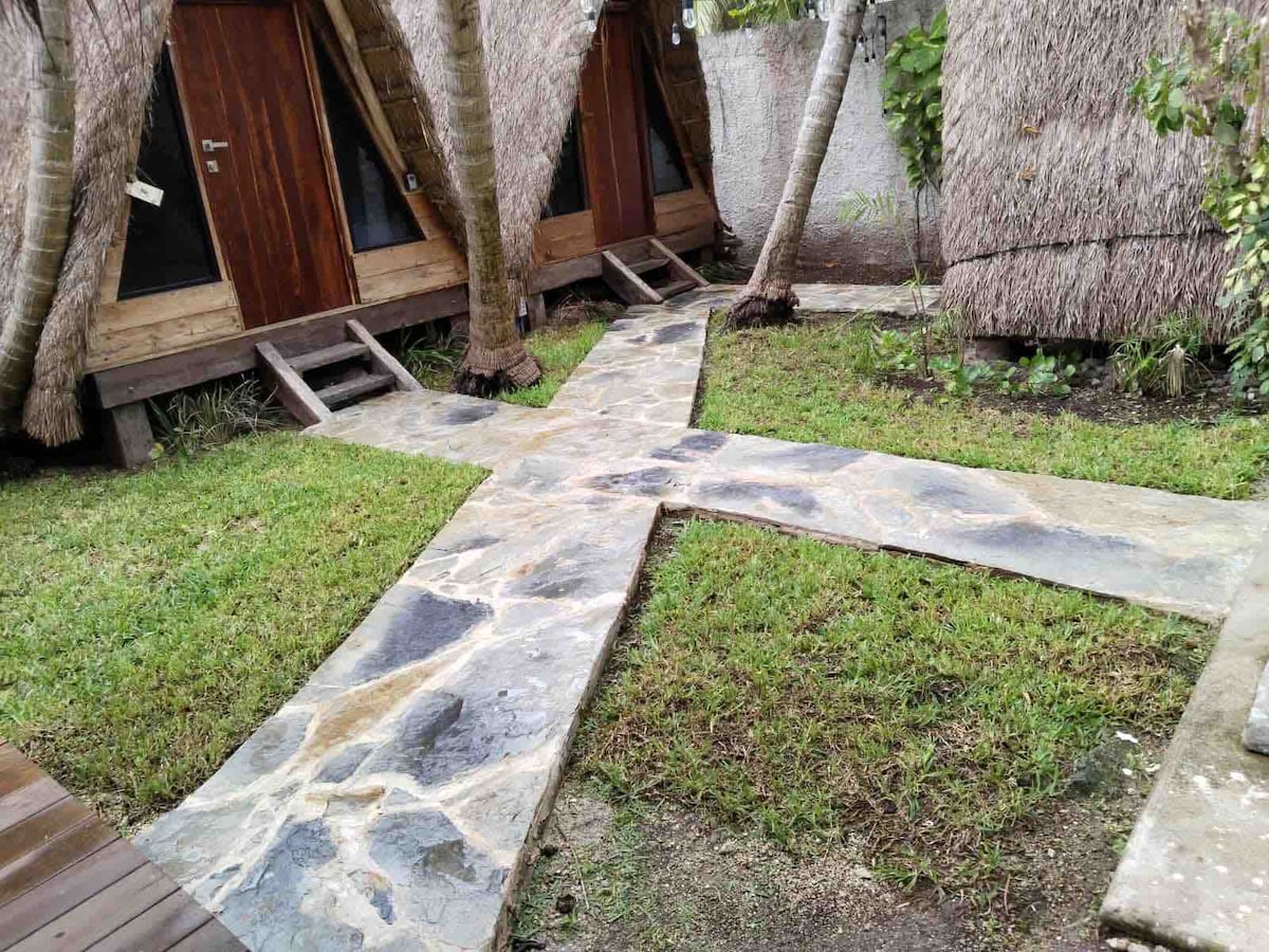 Luz de Luna "Sáasil-Uh" Es una cabaña construida en su mayoría con muros de piedra blanca caliza, caracterizándose por su muro curvo dándole al espacio un movimiento mágico. Armoniza con su muro de rollizos de madera que produce el equilibrio visual hacia el balcón. Es una cabaña mística con palapa maya, cuyo nombre atrajo los hermosos rayos de Luna que se proyectan a través de sus características ventanas circulares, que a su vez reflejan la luz en el piso creando la sensación de que la Luna.