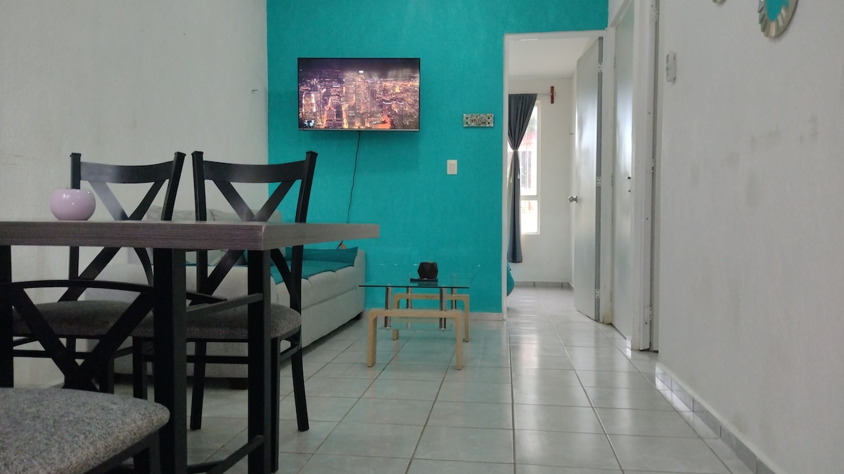 ChanYoali te ofrece descanso después de un día de paseo o de trabajo, cuenta con una salita para disfrutar de la TV o revisar tu móvil, wifi de fibra óptica para navegar perfectamente, cuenta con una cocina con lo necesario para sentirte como en casa, las dos habitaciones climatizadas para un descanso placentero, 4 personas en cama, 1 en sofá cama (sala), sobre avenida con transportes a la zona hotelera, y puntos importantes de la ciudad, plaza a 2 cuadras, por el momento sin patio trasero.