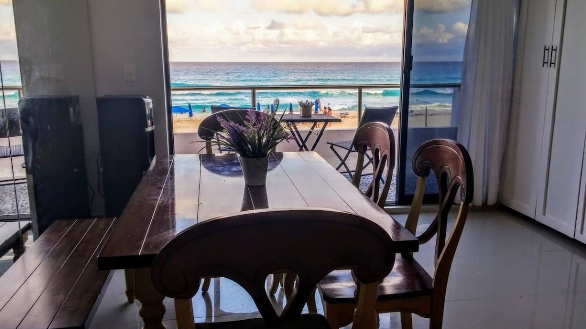 The studio is located at the best beach area in Cancun, you will enjoy its spectacular caribbean ocean view with its baby blue waters!. It is right on the beach with easy access. It is good for couples, solo adventurers and families (with kids), best for maximum 4 adults and one child. I have the contact for you to be able to get COVID tested to go back home and I will be happy to help you.