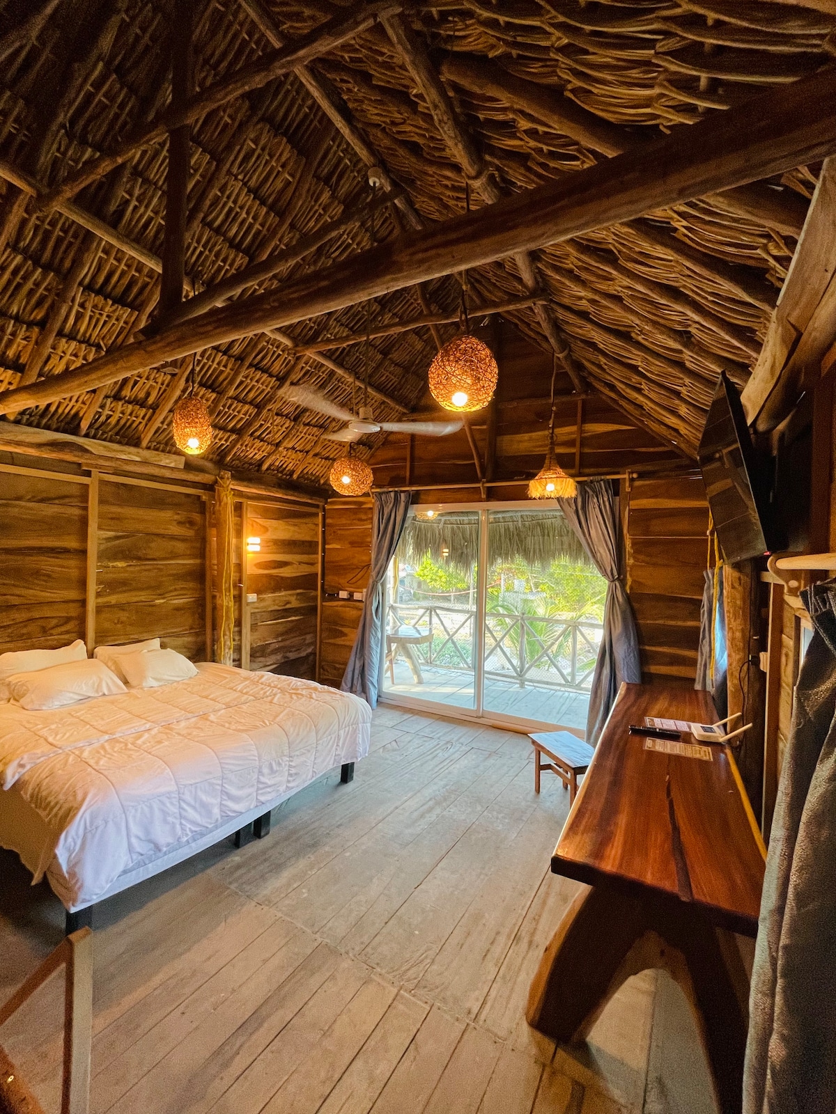 Escape to our stylish and cozy cabins in El Cuyo, just a short walk from the beach. Rest in a super-comfortable bed, unwind in the hammock on the mezzanine, and enjoy cooking at ease in the fully equipped kitchen. The bathroom is conveniently located on the ground floor. Step onto your private terrace and enjoy a relaxed, natural setting—perfect for slowing down, recharging, and embracing the laid-back rhythm of the Yucatán coast