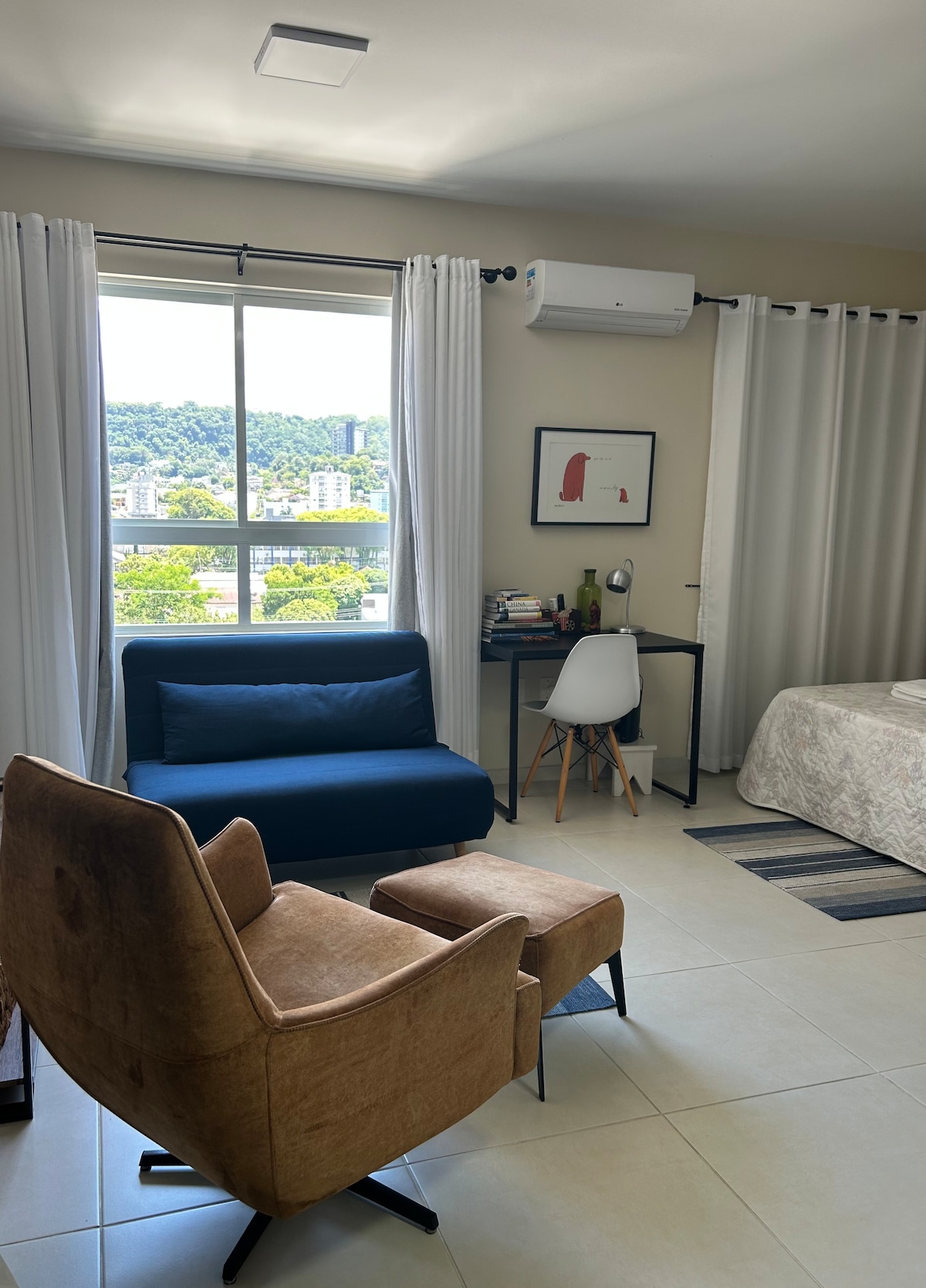 Nossa kitinete é um aconchegante e confortável espaço para descanso. Tem frigobar, microondas, cafeteira, chaleira elétrica, utensílios de cozinha e um fogão portátil por indução para alguma eventualidade. Oferecemos uma cama de casal e um pequeno sofá cama, toalhas, lençóis e cobertores sempre limpos. Acesso à internet, smart tv com Netflix e outras comodidades, split quente/frio, máquina de lavar roupas, ferro de passar e secador de cabelos. Tudo feito para deixar sua estadia mais agradável.