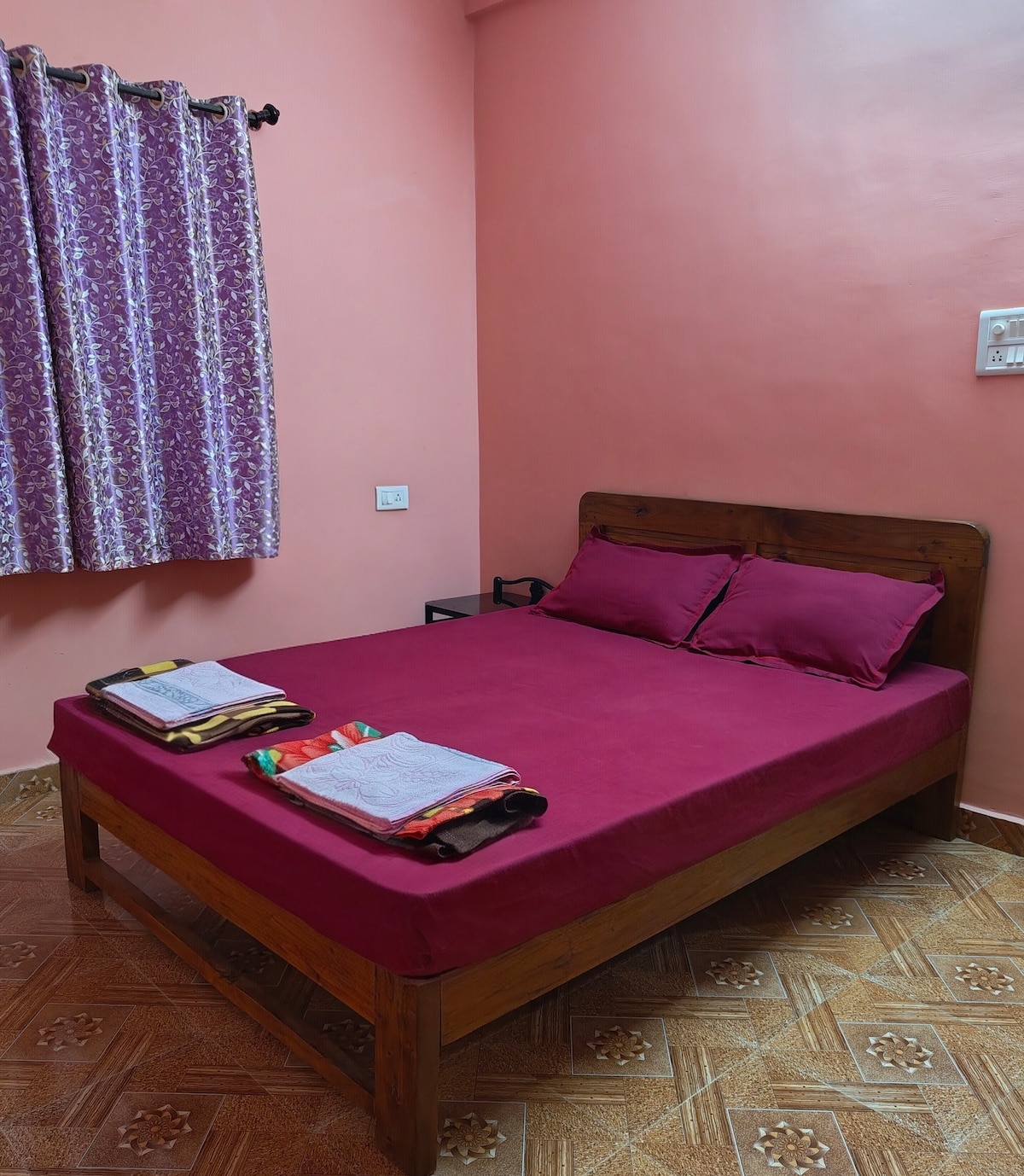 Sanitizing is important to us. We will not mingle with guests.Private gated green property with flowering and fruit bearing plants/ tree's as well as two lawn's and a sit out. Close to the main road yet far away from the bustling noise, restaurants and shops all within walking distance.A 5 minutes walk to the beach. Come relax.!The room is sanitized after every guest checks out,as per Airbnb norms. You are responsible for room house keeping,keep the room clean.Details of listing please read.
