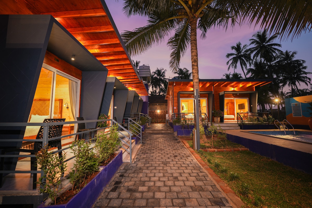 This upscale, unique coastal retreat in Anjuna is designed for slow, relaxed stays by the sea. Thoughtfully crafted wooden cottages are arranged around a serene swimming pool, offering privacy, comfort, and a calm escape just a minute walk from the beach. Wake up to gentle coastal mornings and enjoy a complimentary breakfast, included with your stay, before heading out to explore Anjuna or simply unwinding poolside.