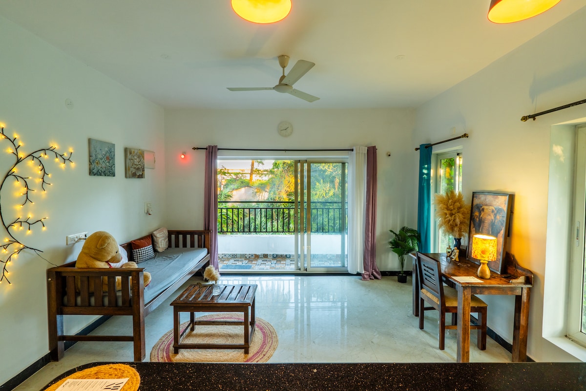 Welcome to GreenSpace House 103 – a Neat and Cozy 1BHK getaway pad by the Chapora River in Siolim. Designed with details for comfort , it’s perfect for 2 guests (3rd guest ₹1000/night). Pet-friendly too (₹1000/7 day stay). Enjoy peaceful river views, vibrant interiors, and all the charm of North Goa. Ideal for couples, creatives, or solo travelers seeking a soulful stay. Please do not ask for discounts.