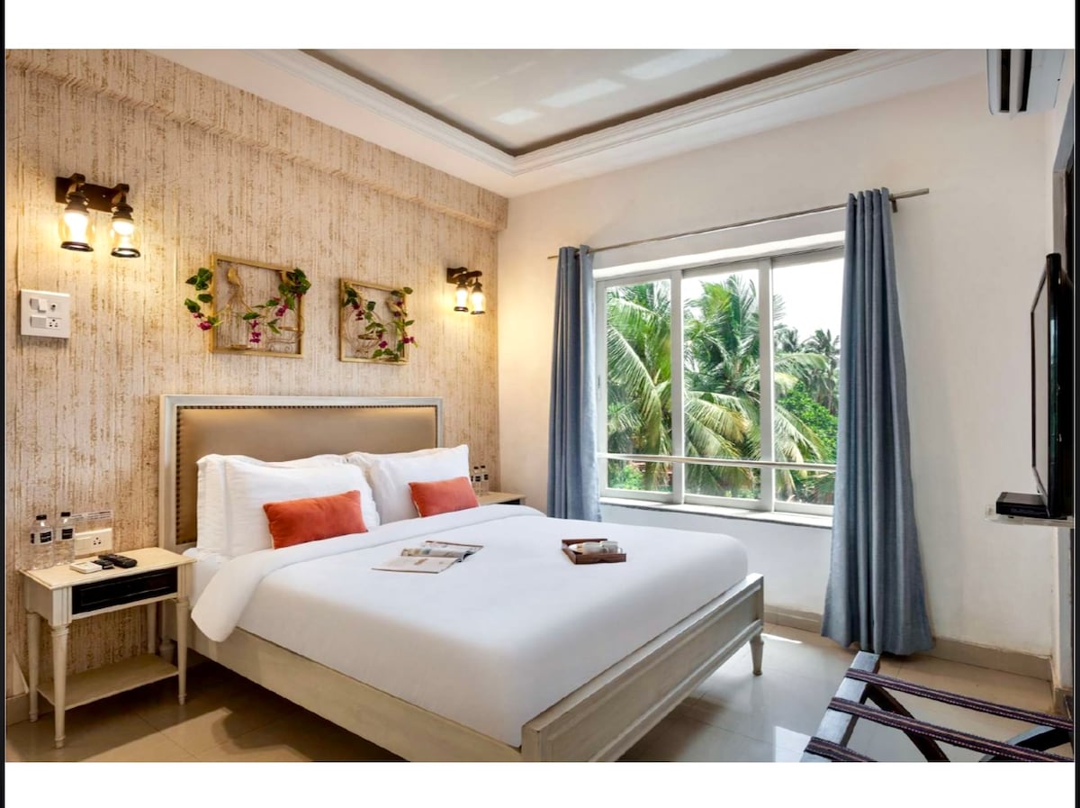 Enjoy a boutique-style retreat which is just 5-minute to Candolim Beach. About this space: Pool | Fast Wi-Fi | Free Parking Fully Functional kitchen Bedroom with plush linens | 2 ACs Washing Machine Secure complex A wonderful Caretaker Location Perks: ✔ Candolim Beach ✔ Pool ✔ Gym ✔ Near bars, cafes, scooter rentals Best For: Romantic getaways, workations, or solo travel with style.