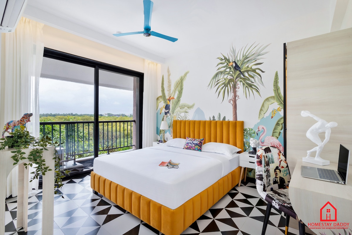 Welcome to Grandiosa by tisyastays! This luxury 1BHK Apartment features a beautifully designed living room, kitchen, balcony, and 2 bathrooms, all located in the heart of Goa. Situated in Candolim, just a 5-minute drive from the beach, the property offers top-notch amenities, including a spacious rooftop pool and a gym with views of lush greenery. The home is crafted with love, using the finest materials and premium furniture to ensure a grand, luxurious, and comfortable stay.