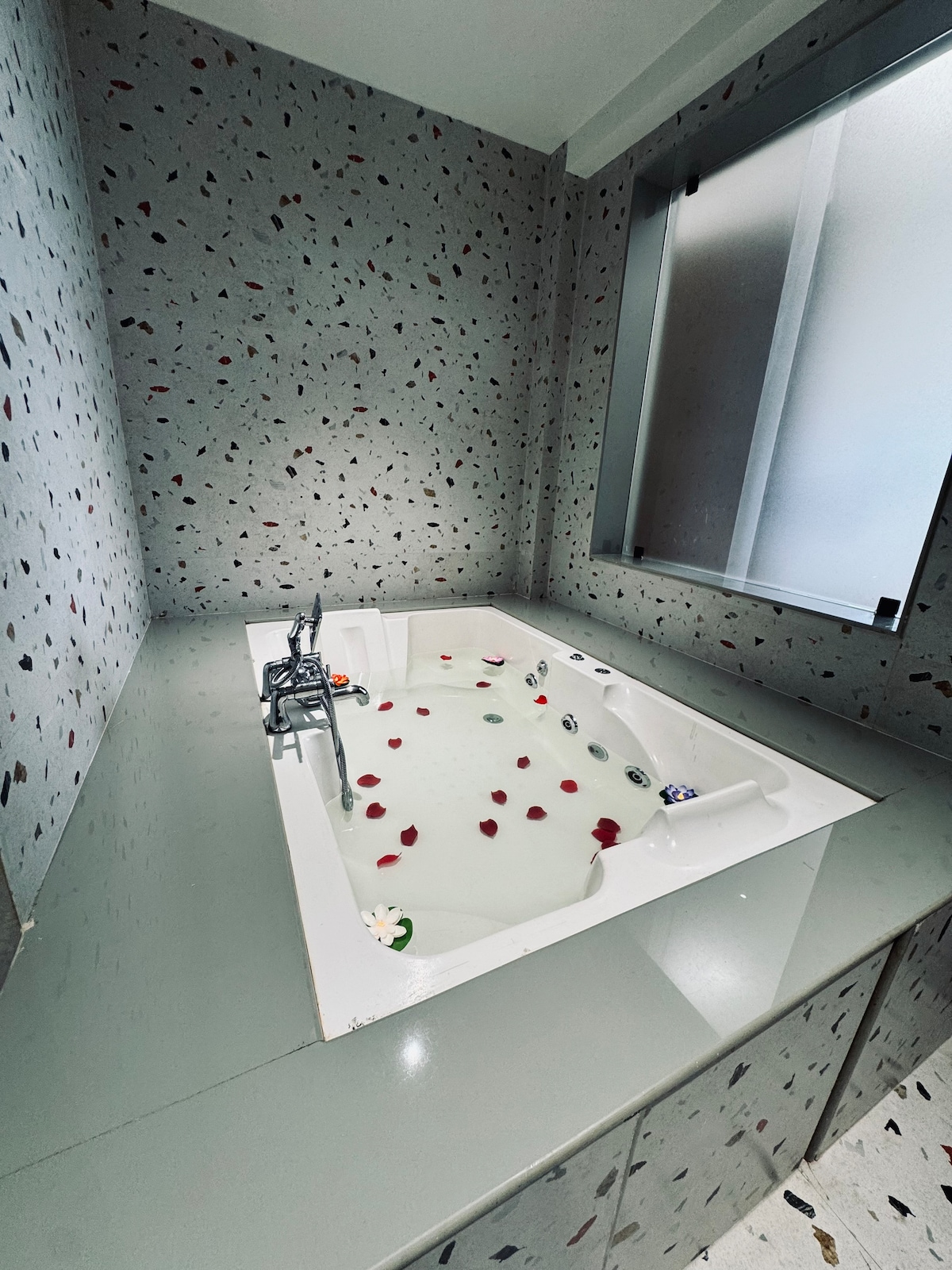 Kanso by Earthen Window is a quiet 1BHK in Siolim, shaped around earth, light, and privacy. Designed for slow mornings and unhurried evenings, the interiors are done with limewashed walls, soft microconcrete floors, and thoughtfully chosen objects that gives it a villa like charm. The bedroom opens to a PRIVATE GARDEN TERRACE and a secluded microconcrete hot tub with JACUZZI, both overlooking uninterrupted green forest. Shared amenities include a pool, steam room, gym, and 24×7 security.