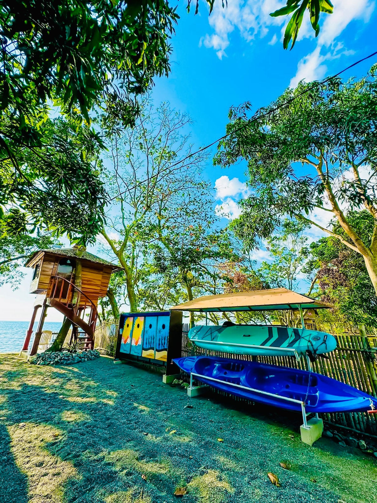 A second floor exclusive loft that contains 3 airconditioned bedrooms and 2 bathrooms. Right in front of the beach with views from the balcony and a living room inside. The rate is good for 6 pax. Guests are allowed to add up to 3 additional pax (with a fee, inclusive of extra bed) The first floor is a common area for all the guests of the property, even for those who occupy the rooms at the back of the main house.