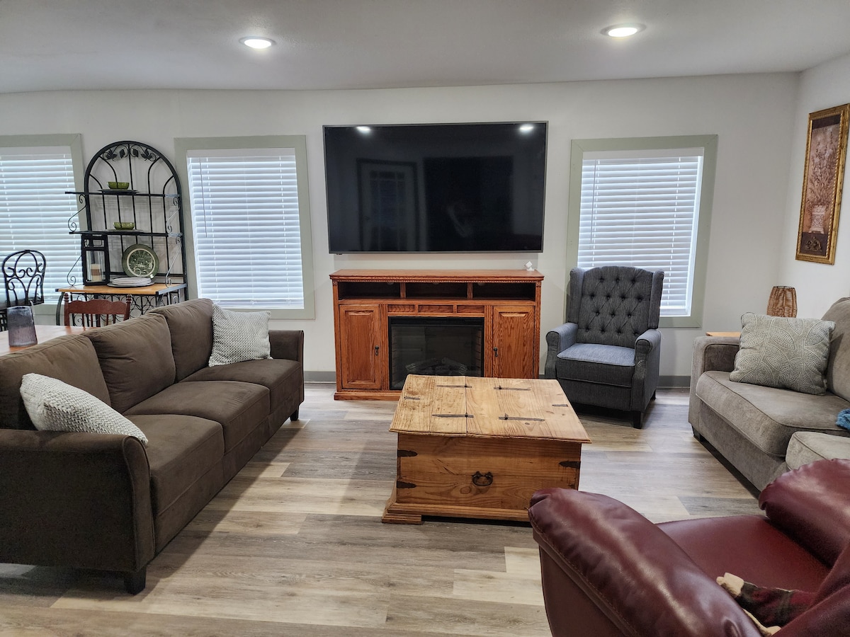 Down the winding road, at the bottom of the wooded hill, “Serenity” awaits. This single-room guesthouse sits on the banks of Sibley Lake. Relax and take in the sunsets from the screened porch. Up to 4 guests with a queen-sized bed and a queen fold-out couch. It has a full bath with shower, a kitchenette with island and barstools. A paddleboat, kayaks and life vests are available for use during your stay. Hosts live up and across the drive from the Serenity Guesthouse Located @ 10 min from town.