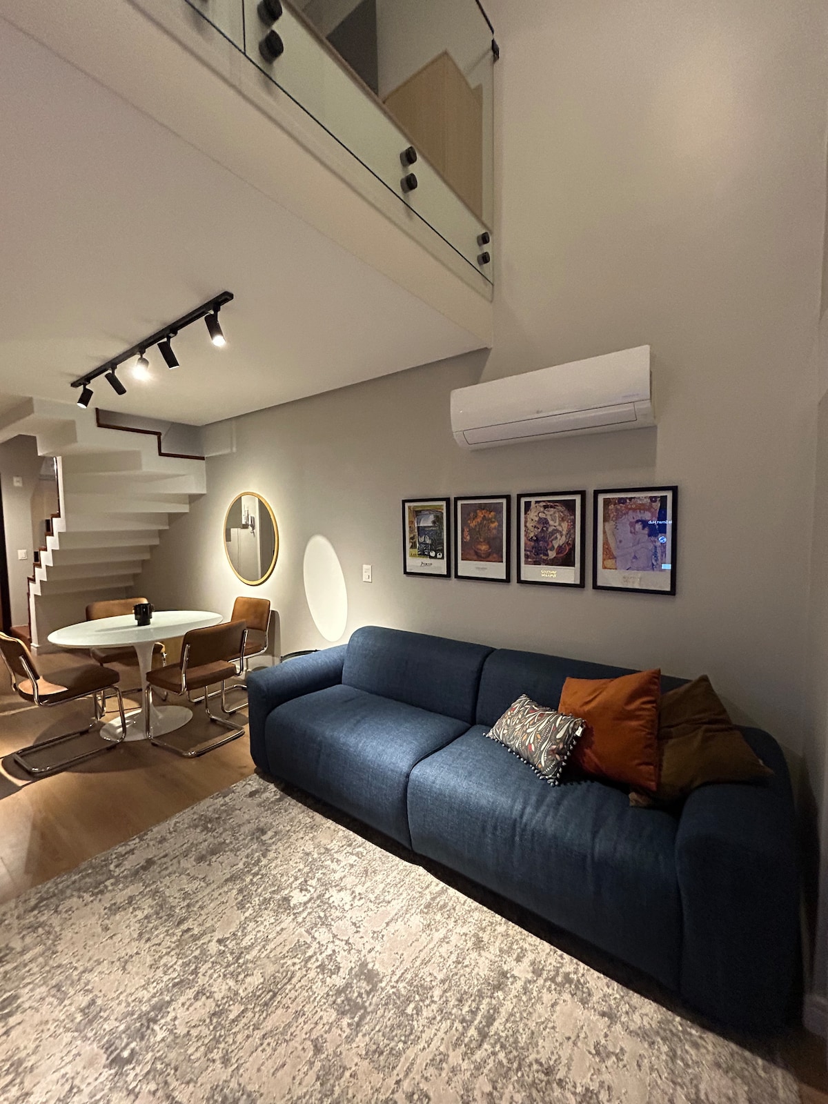 Apartamento duplex, localizado no centro de Canela, a 100 metros da praça principal, bancos, transportes públicos (inclusive rodoviária), supermercado e comércio em geral, além da novíssima rua coberta, com diversas opções de lazer e gastronomia. Acomoda confortavelmente até 7 pessoas em seus três dormitórios, todas em camas boxes. Duas suítes, sendo uma com banheira de hidromassagem. Sala com dois ambientes. Espaço ideal para famílias. Roupa de cama e banho de linha hoteleira. Wi-Fi 300Mb.