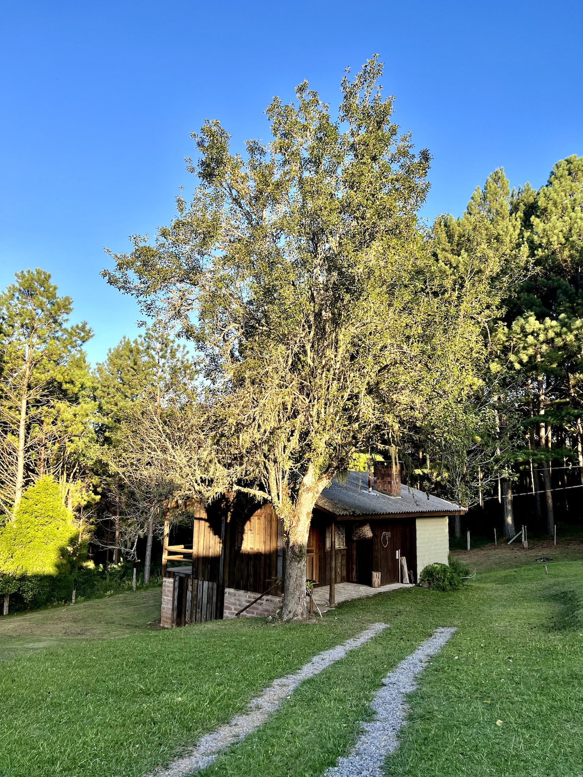 Bem próxima de uma mata , a poucos metros de um arroio e com vista para a cascata, possui uma confortável sala para dois ambientes, com lareira, mesa para 4 pessoas, cozinha equipada e banheiro com hidro . No mezanino , uma suíte muito aconchegante com TV, ar-condicionado e um cantinho planejado para escritório. Um lindo deck compõe o cenário que nos abraça e nos convida a contemplar as exuberantes araucárias e a fauna da região. Acesso por trilha de pedra a poucos metros da rua principal .