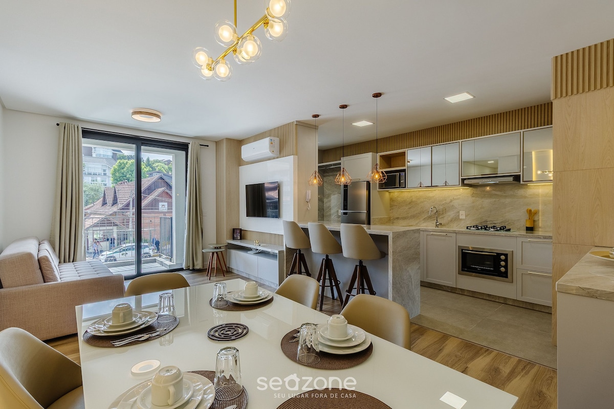 Magnifico apt em condomínio exclusivo à cinco 5 min de caminhada da famosa rua coberta. Venha momentos inesquecíveis em um apt charmoso com total infraestrutura, junto à natureza, com lareira, ar condicionado quente e frio, exatamente o conforto que você merece para desfrutar o melhor da Serra gaúcha. Seu pet de pequeno porte também é bem vindo!