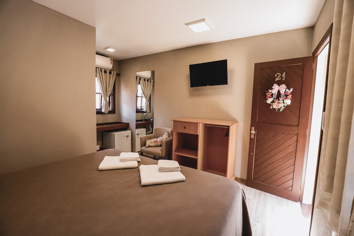 Viva momentos únicos na Serra Gaúcha! Hospede-se em um flat completo com a estrutura de um hotel e o conforto de casa. Lareira, piscina aquecida, sauna, brinquedoteca, academia e muito mais. Nosso flat está em local privilegiado e tranquilo, a apenas 700 metros da Catedral de Pedra, no coração de Canela. Fica em uma rua residencial arborizada, com fácil acesso a cafés, restaurantes e lojas. Ao lado área verde, contato com a natureza. Serviço de café da manhã (custo à parte) entregue no apto.