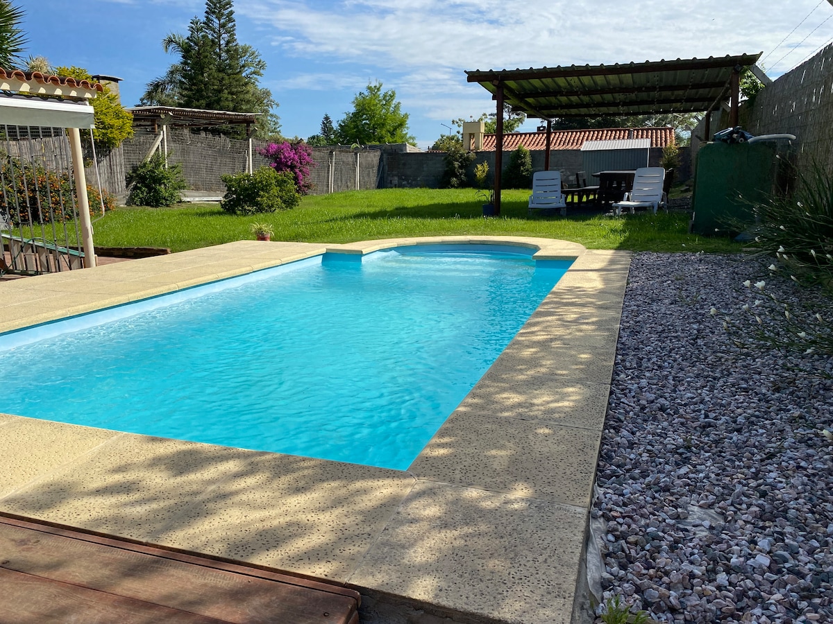 Espectacular jardín con piscina de agua, barbacoa cerrada para que los niños se aislen un poco(tiene llave por suerte), comedor exterior para los que gustan de los mosquitos y otros insectos, parrillero techado para el que siempre hace la parrilla, fogón con hamaca de madera y poltronas para quedarse viendo las estrellas escuchando el fuego y mucho pero mucho verde para desconectarse. A la playa vas caminando, 250 mts. Acepta mascotas tradicionales; no conejo/pony/tiburón o similares. ⭐️
