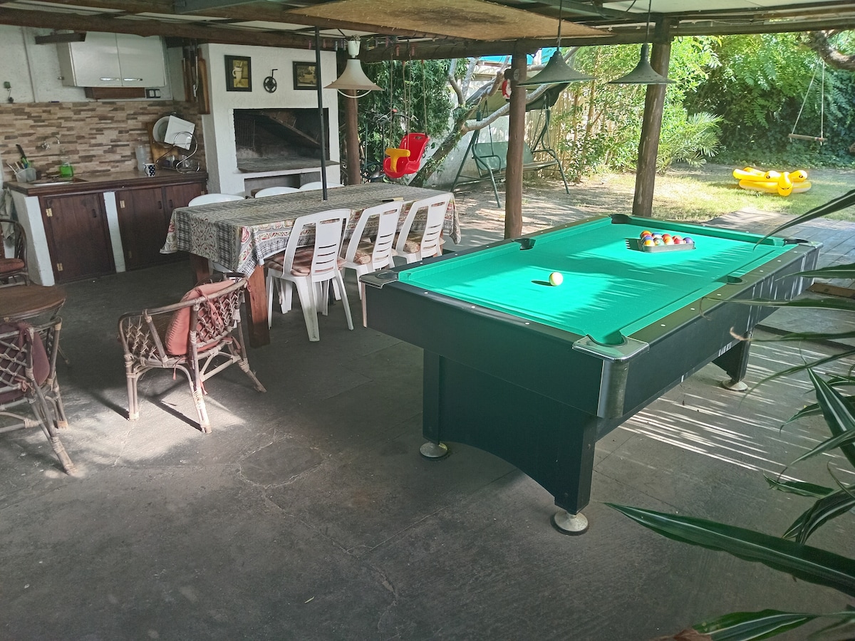 A la altura del km 36 de la ruta interbalnearia a 50 metros de la playa y del arroyo pando (a 30 minutos de montevideo y 10 minutos de atlantida) se ubica esta cómoda casa de 2 dormitorios living comedor cocina baño estufa leña wifi aire acondicionado barbacoa pool ping pong kayak artículos de pesca bicicletas y otros!! Incluye lavadora ropa de cama toallas reposeras y sombrilla!Cerca de todos los servicios! A 50 metros de parada del bus! Estacionamiento para 2 autos! Porton electrico!