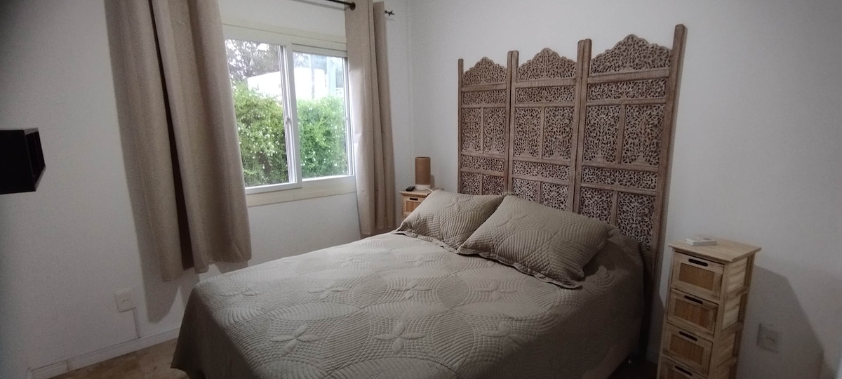 Bienvenido al acogedor apartamento contenedor, a 8 cuadras de la playa, 3 de la ruta y metros del bus 711. Tiene 1 dormitorio con cama Queen, cocina completa, 2 aires, baño con lavarropas, y un living cómodo con sillón cama y TV. Patio cerrado con estacionamiento videovigilado, hermoso jardín y aceptamos mascotas. Ubicación estratégica: playa, servicios y vida nocturna :). ¡Incluso tenemos una guitarra para vos! ¡Haremos que disfrutes de una estancia inolvidable en este hermoso rincón costero!