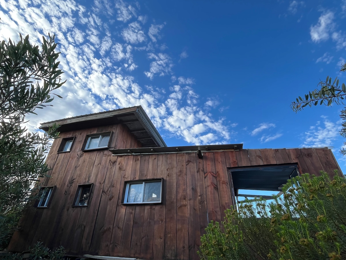 Volvemos a recibirlos después de 3 años. Una cabañita de madera, con todo lo necesario para tener una excelente estadía. Al ser un mono ambiente el espacio es reducido y manejamos varias posibilidades para dormir, las opciones son: una cama de dos plazas, la otra sería sumarle de ser necesario un colchón de una plaza sin cama, estas serían algunas de las posibilidades para ir modificando para las comodidades según quienes sean los huéspedes.