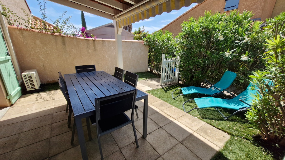 La maison se trouve à seulement 2 min à pied la plage, immense bande de sable fin de 9 km, idéale pour les balades, baignades et instants de détente face à la Méditerranée Vous allez adorer : • Grand jardin privé avec arbres fruitiers, transats, coin repas ombragé • Intérieur apaisant lumineux • Climatisation • Plain pied • Parking sur place • Animaux bienvenus • Tout à pied : plage, restos, marchés • Cuisine neuve, moderne, lavelinge Une maison rénovée avec soin, pensée pour notre famille
