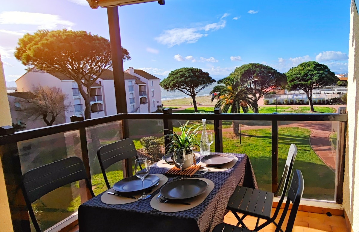Situé en bord de mer , marcher 50 mètres et vous voilà les pieds dans l’eau ! Il se situe à proximité du centre ville ainsi que tous les restaurants et bars. Le studio est pensé pour vous sentir le plus alaise possible pour passer de bonne vacances. Parking à proximité, le studio se situe aussi à 5-10 min à pieds de la gare ! Un service de navette gratuite est mise à votre disposition dans le village afin de vous déplacer plus facilement et vous évitez de prendre la voiture.