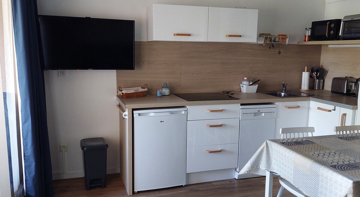 Studio vue mer au 5ème étage avec ascenseur. accès handicapé.Commerces et plage à 50m.Cuisine équipée frigo top, plaque induction,micro onde grill, cafetières filtre et senséo. Canapé lit (145 x 195), télé, clim réversible,WIFI. Balcon fermé équipé plancha. 2 lits superposés. Laverie automatique, supérette à proximité. Carte accès Parking sous-terrain à 500 m gratuit du 1/7-31/8. Draps et serviettes sur demande (10€/pers). Piscine de fin avril à début octobre (horaire reduit arreté préfet)
