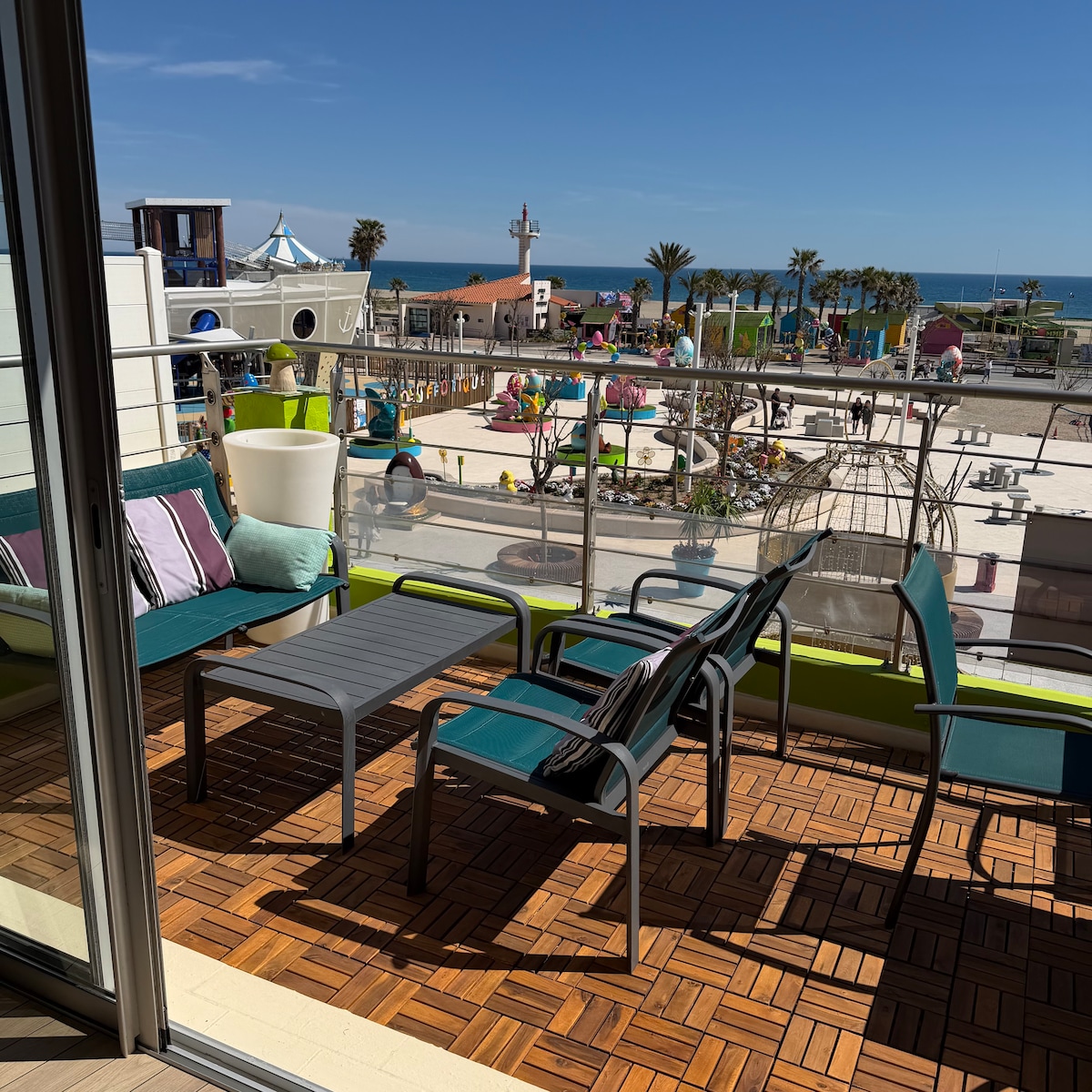 A l'abri de la tramontane. Appartement très lumineux. Ascenseur accessible PMR Parking Privatif avec stop car. Local vélo a disposition sur demande. Appartement complètement rénové. Dans un décor paradisiaque de carte postale. Au calme des nuisances nocturnes et à la fois proche de toutes les commodités à pieds. A quelques pas vous avez tous les restaurants, les paillotes, mini golf, sport en plein air gratuit, glaciers, bars, manèges pour les enfants etc...